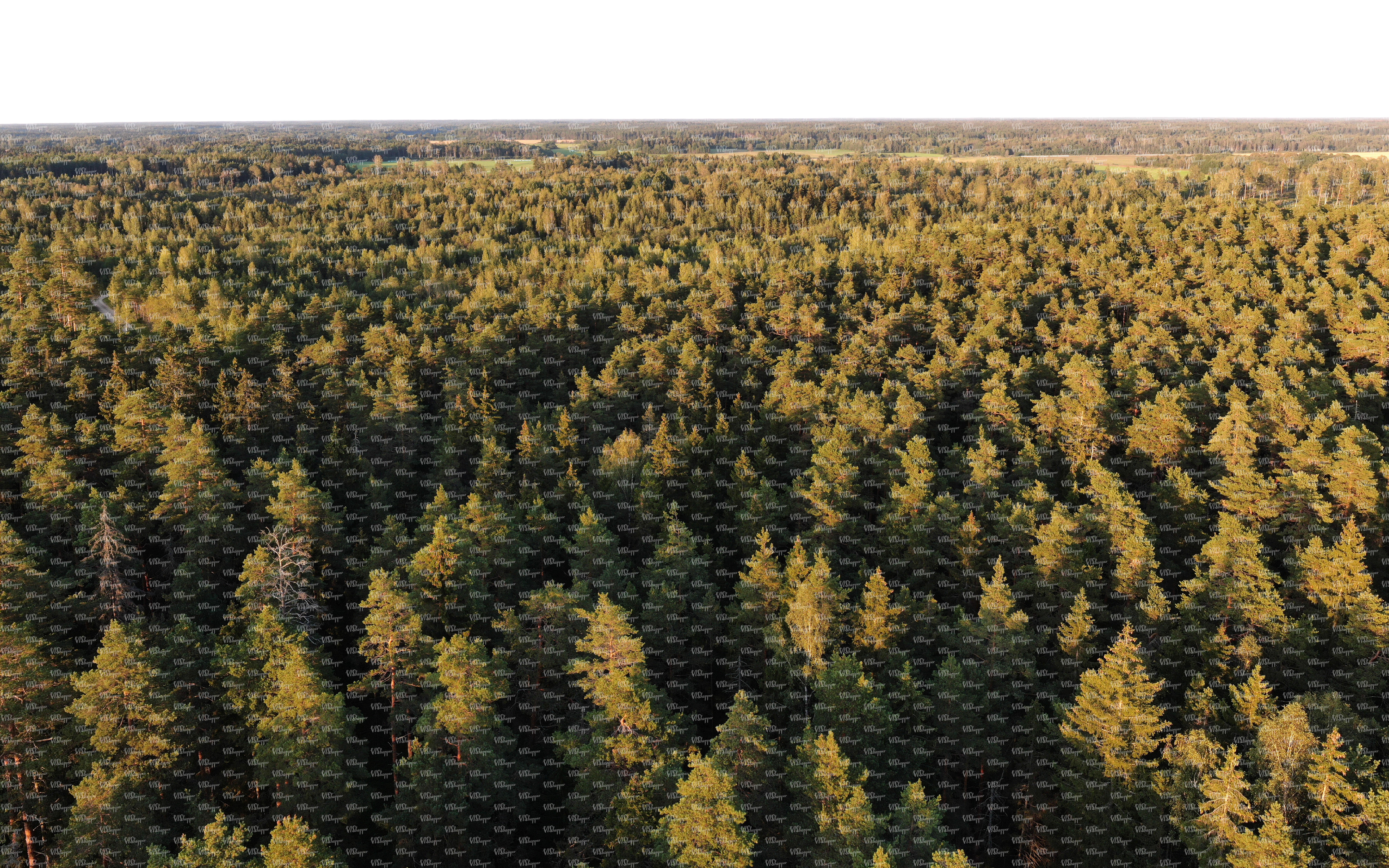 • above view of a forest in golden evening light