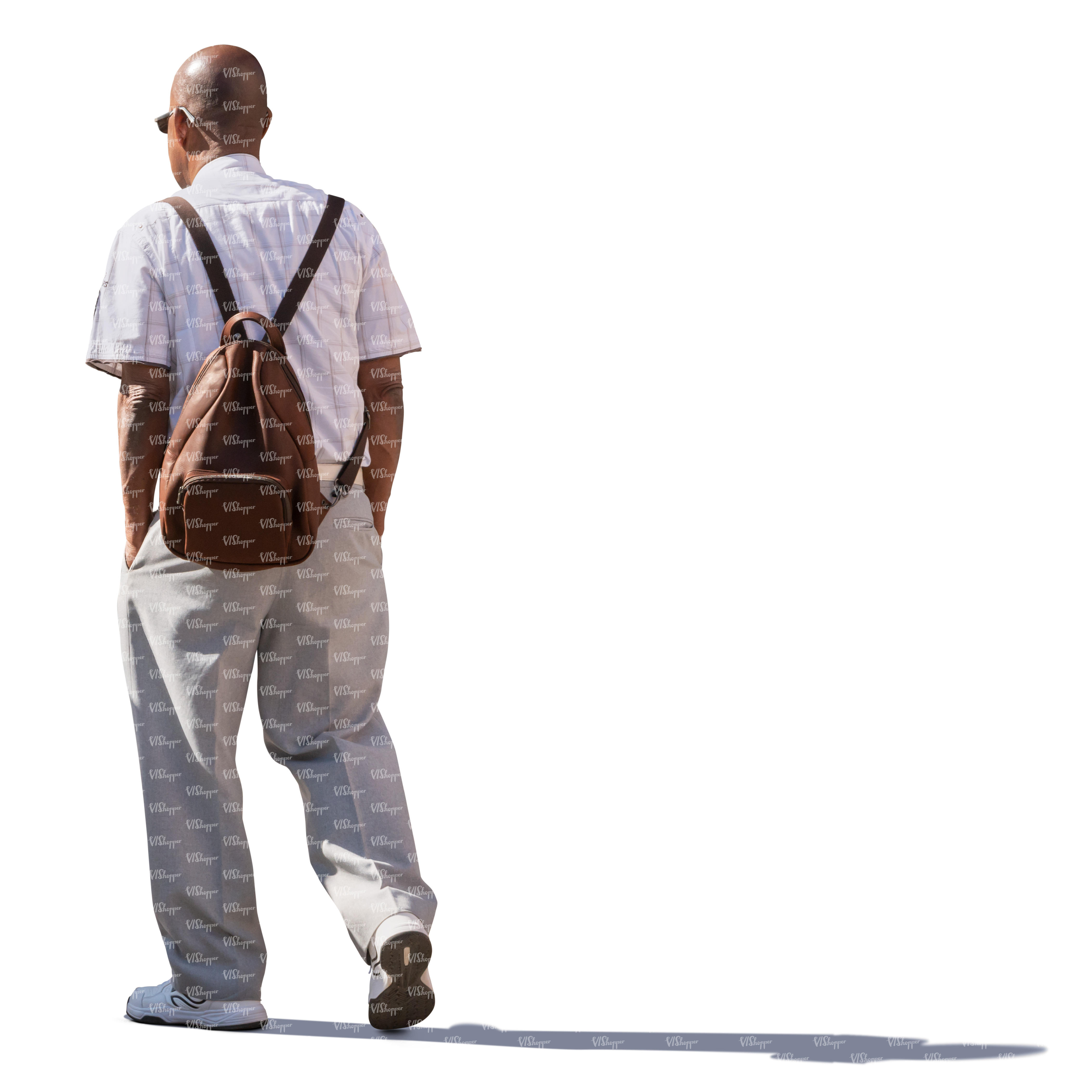 backlit older man walking