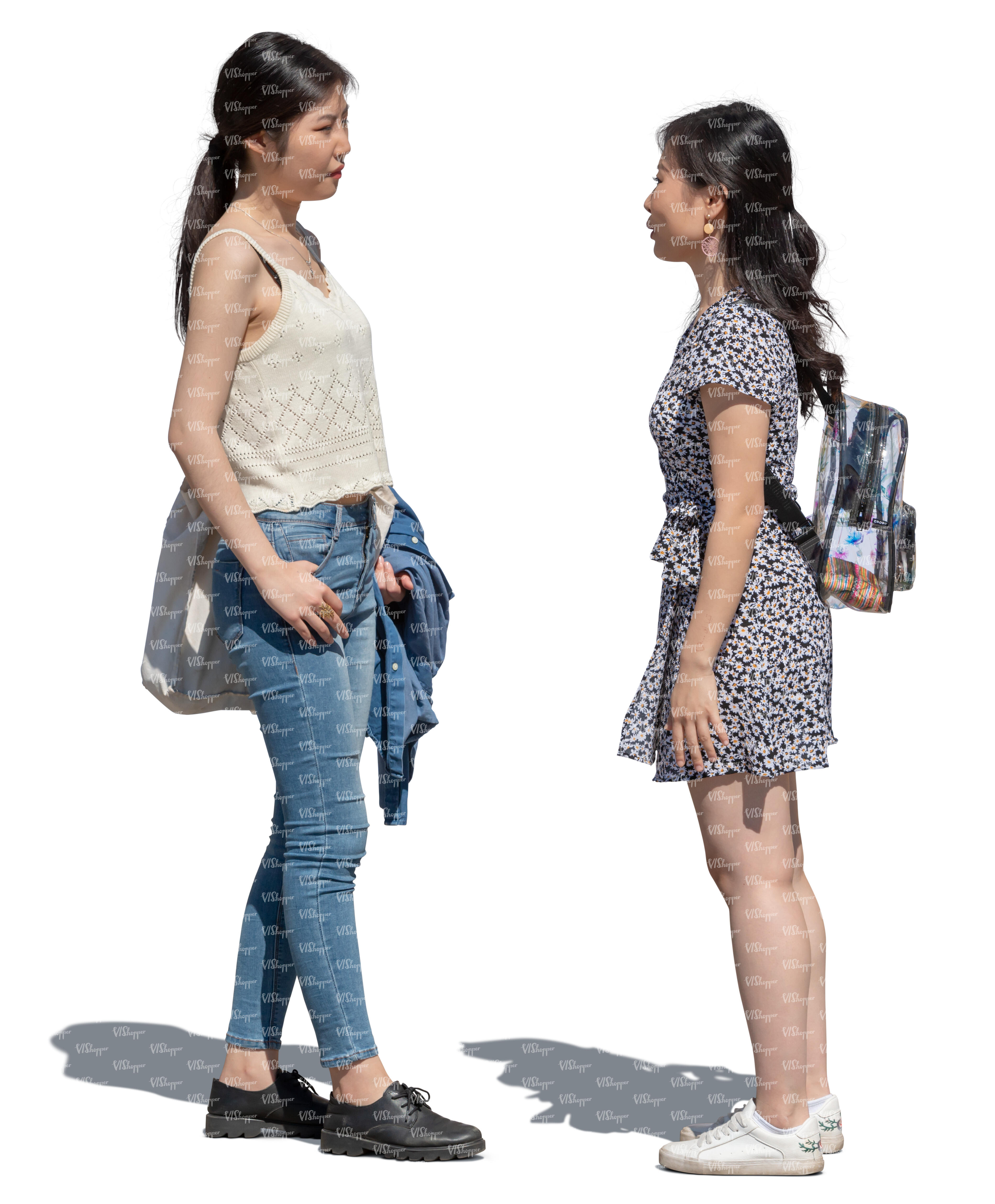 • two cut out teenage girls coming from shopping