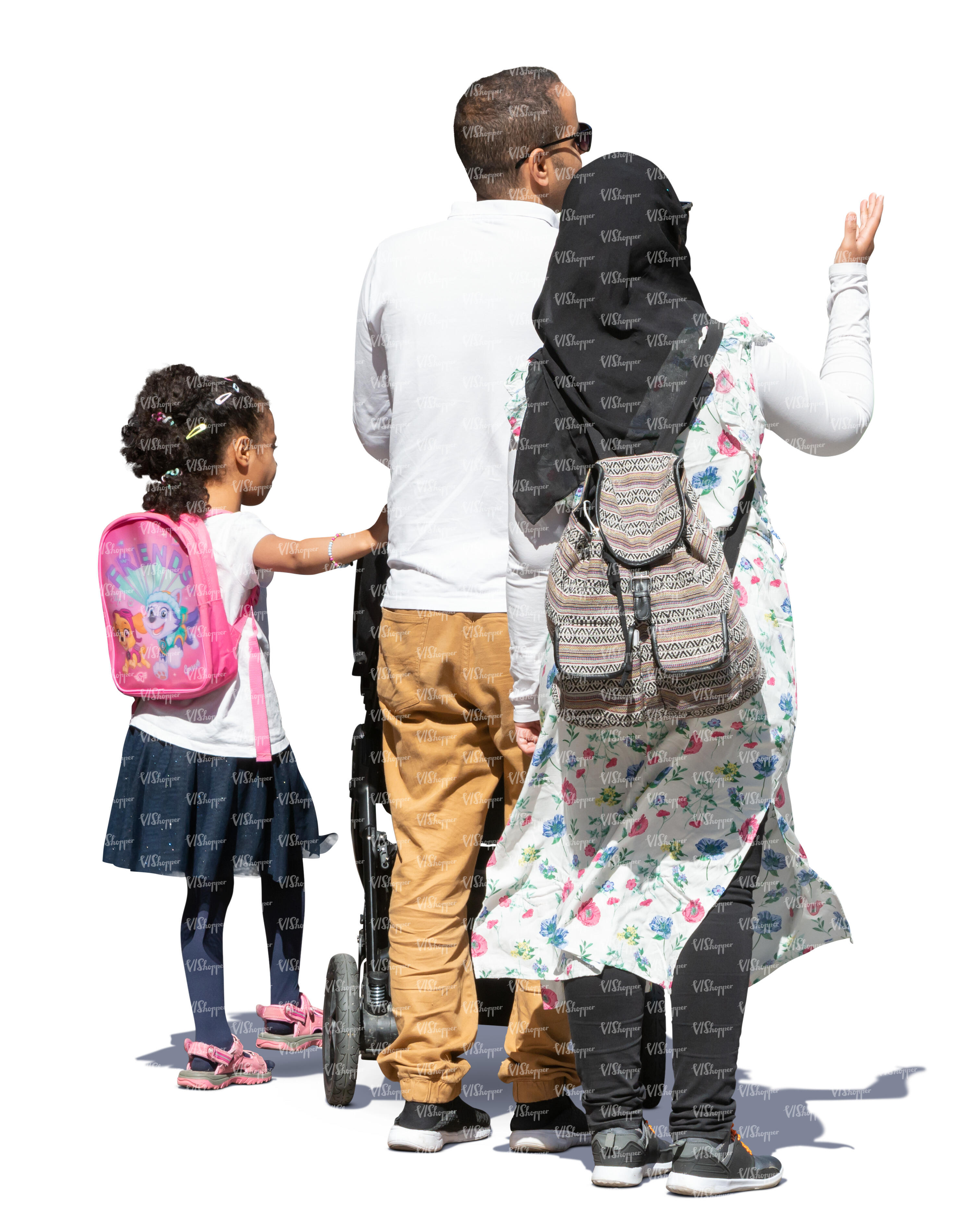 • cut out backlit family with a little girl walking