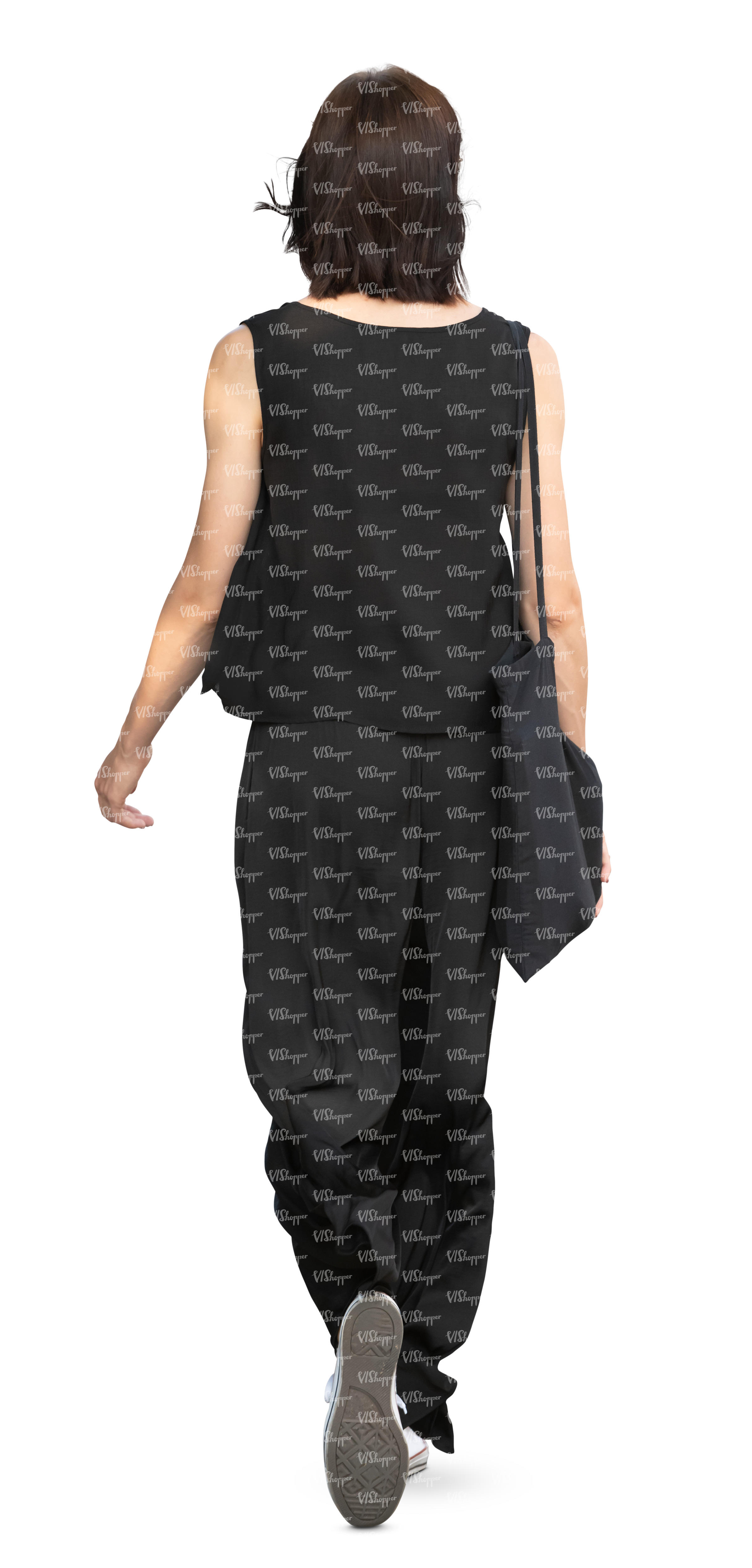 • woman in a black summer costume