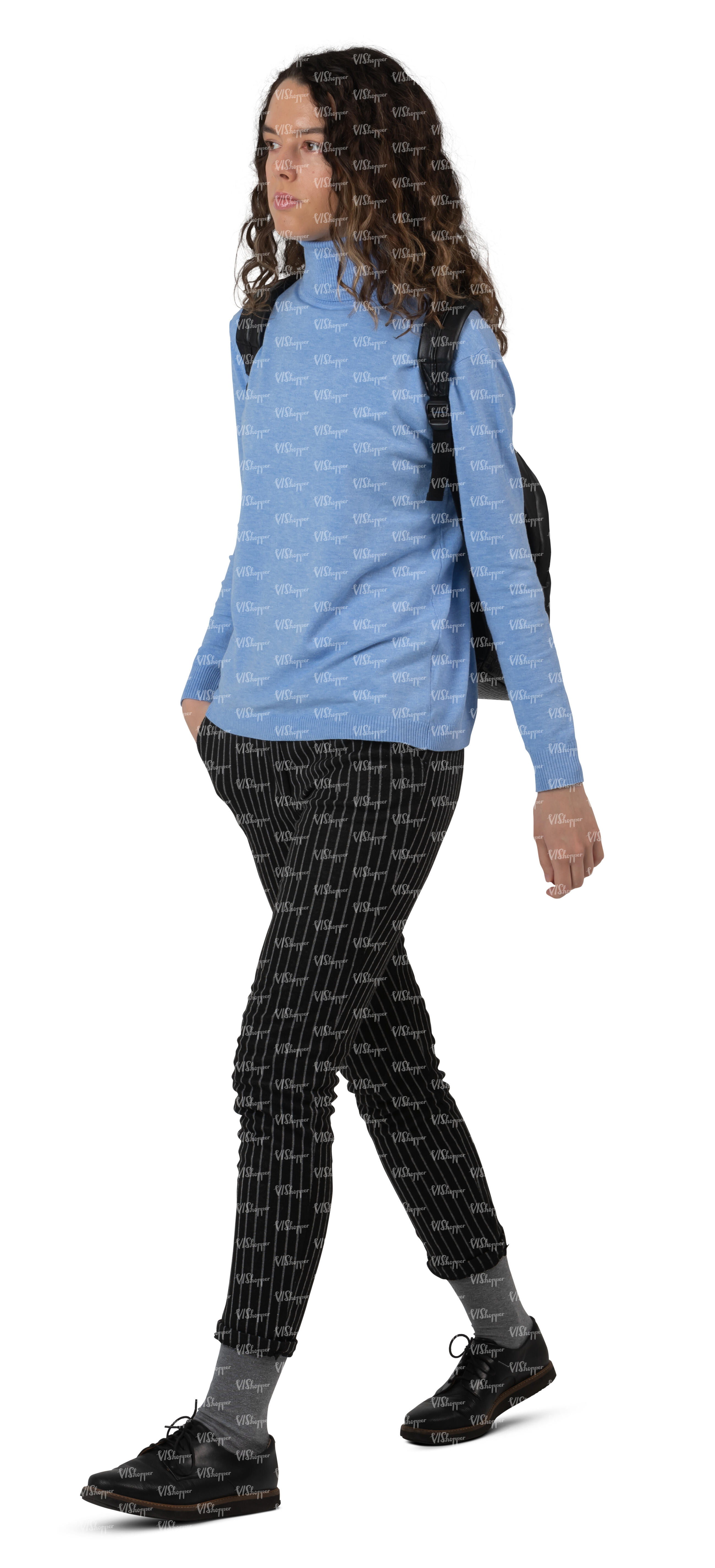 • woman with a backpack walking