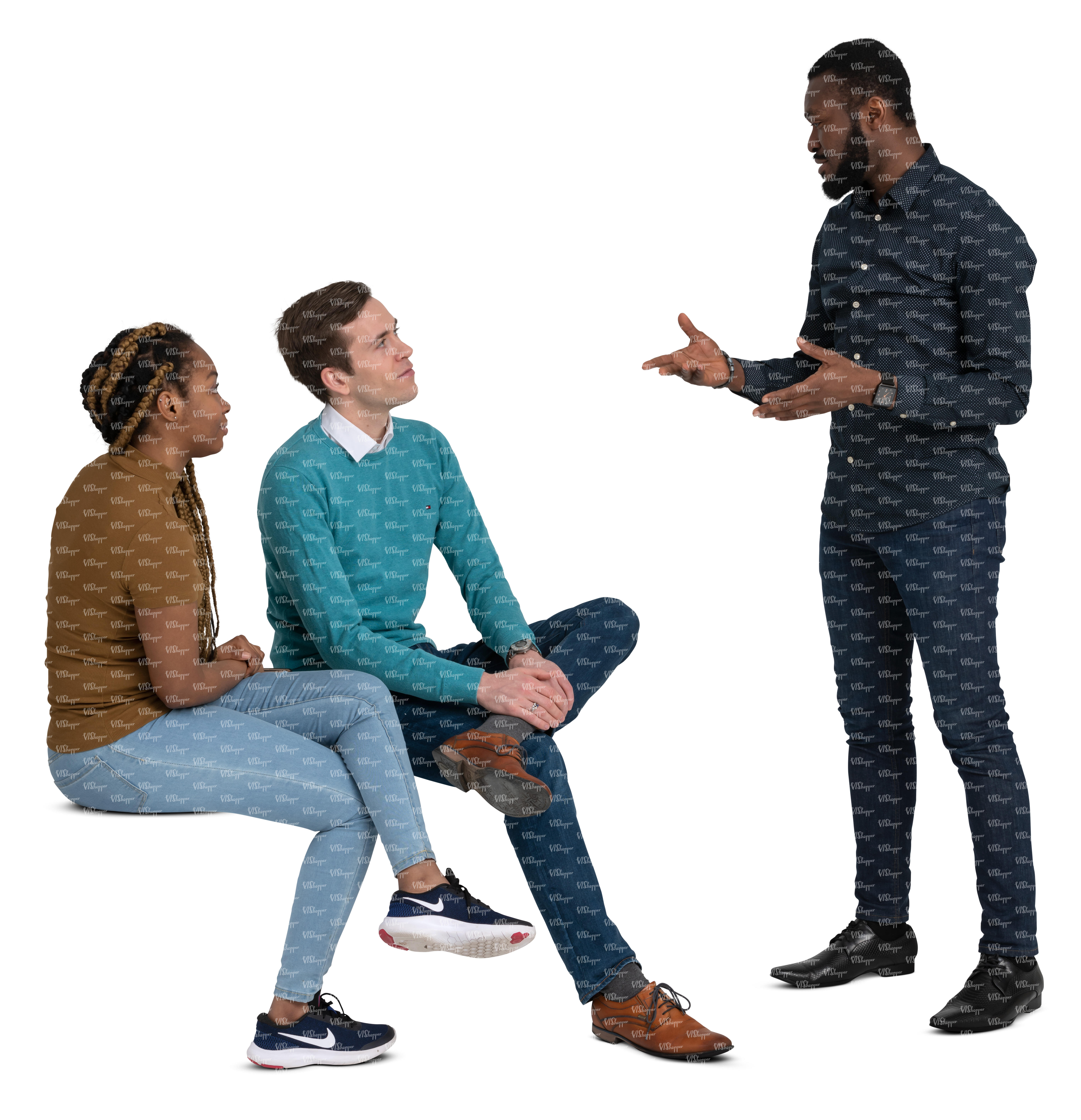 • cut out group of three friends standing in partial tree shade