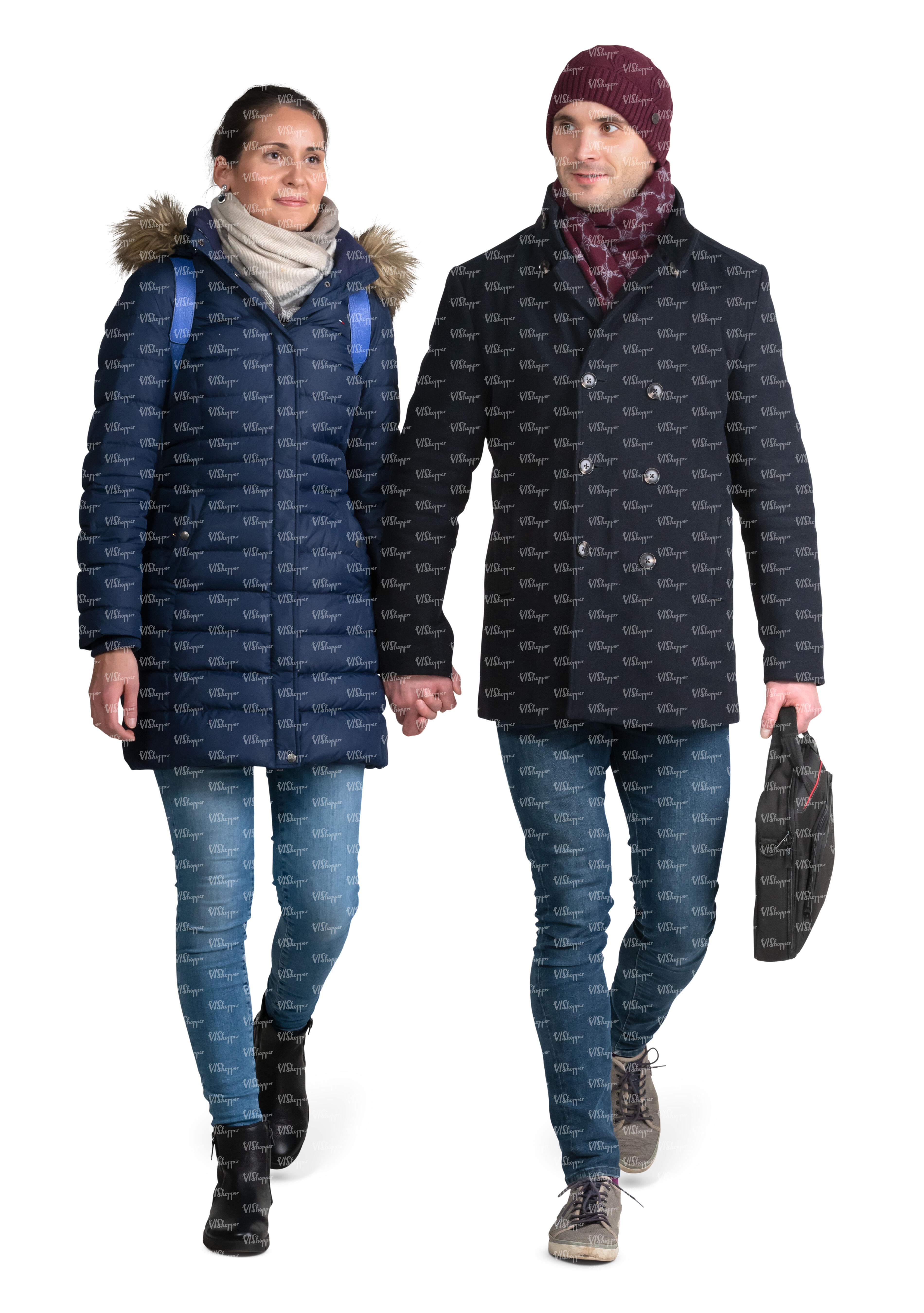 • cut out man and woman standing and talking while drinking refreshing drinks