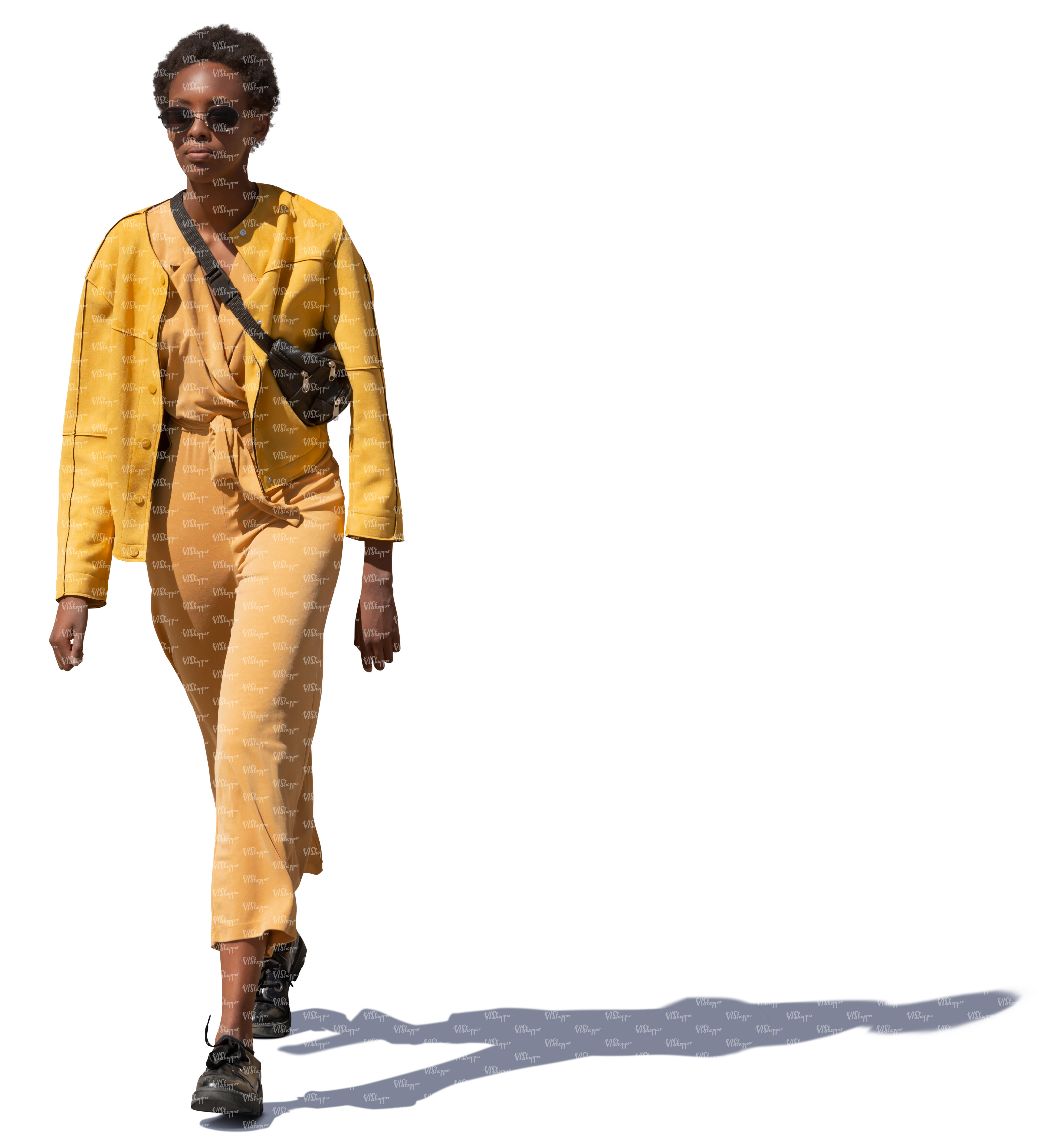 • woman in a yellow costume walking