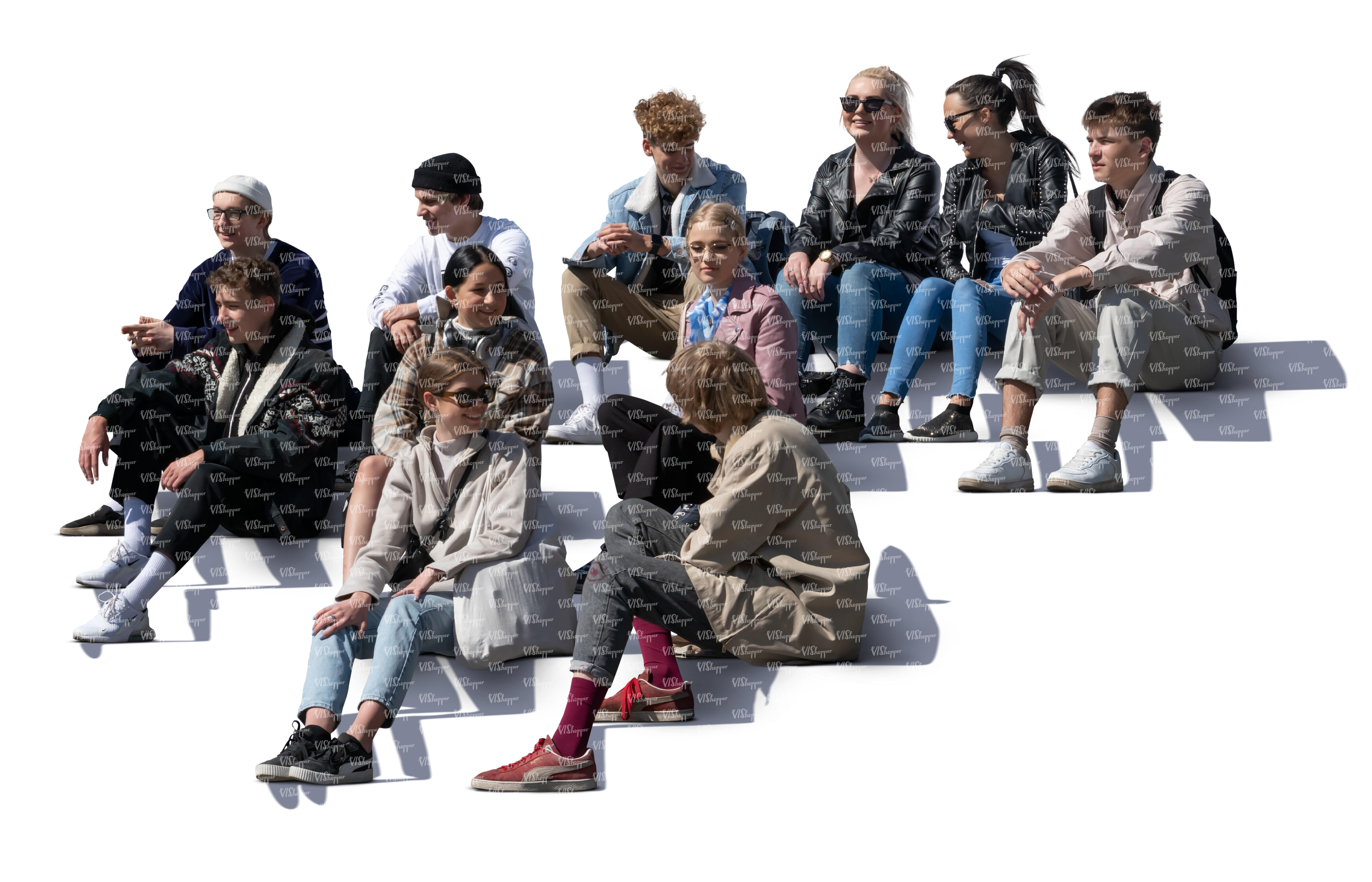 • cut out multinational group of friends walking