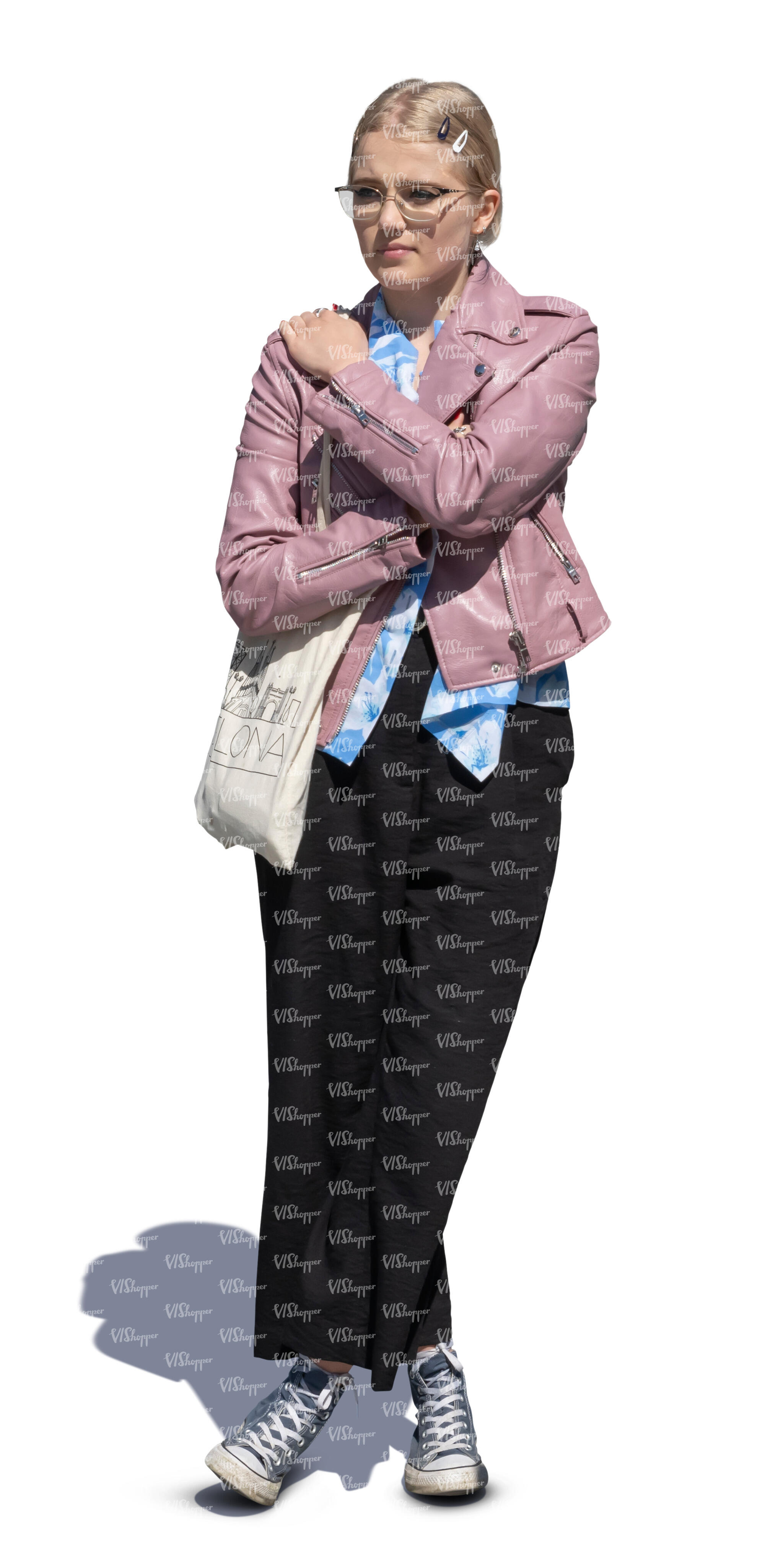 • two cut out teenage girls coming from shopping