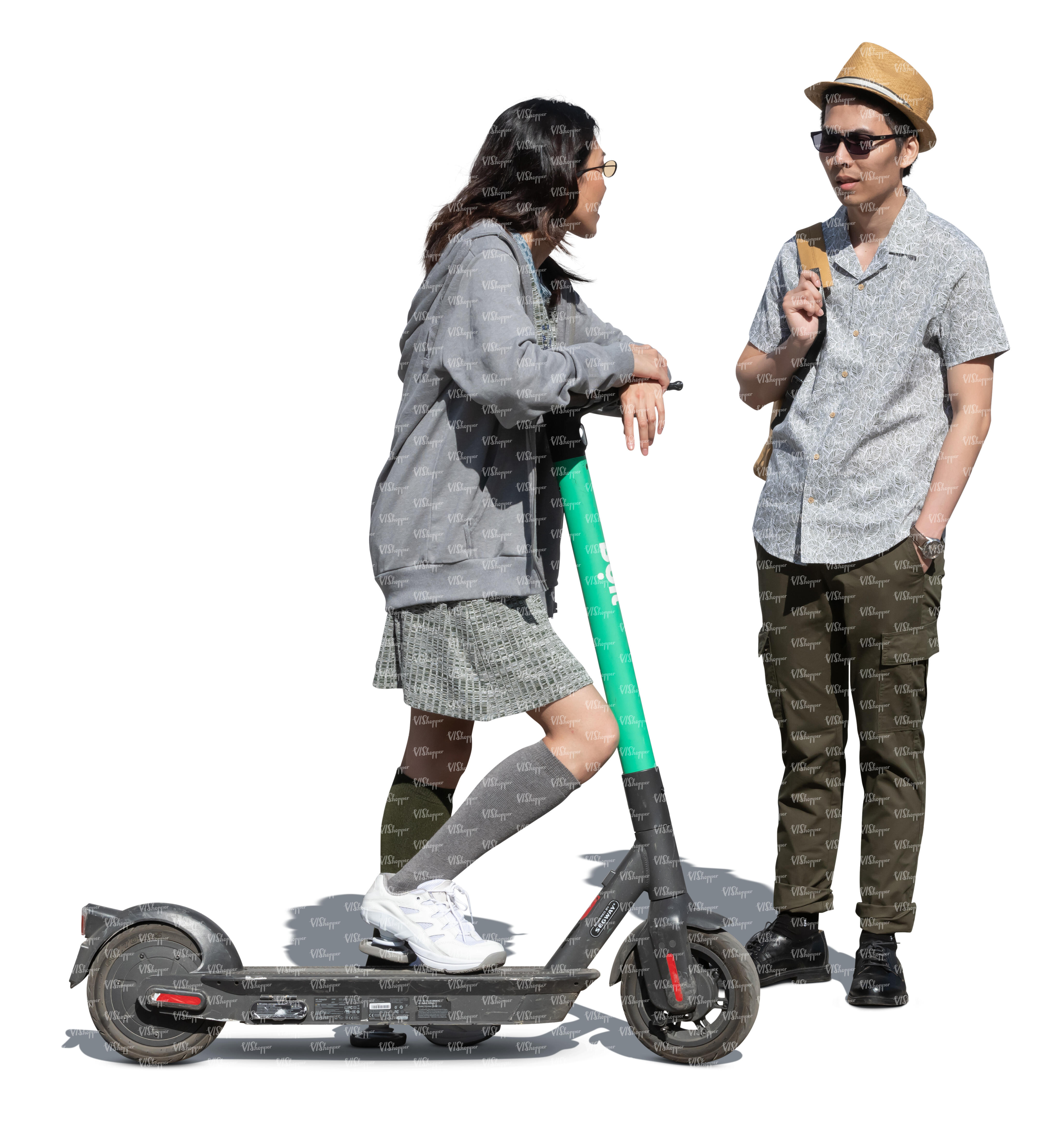 • cut out man and woman standing and talking while drinking refreshing drinks