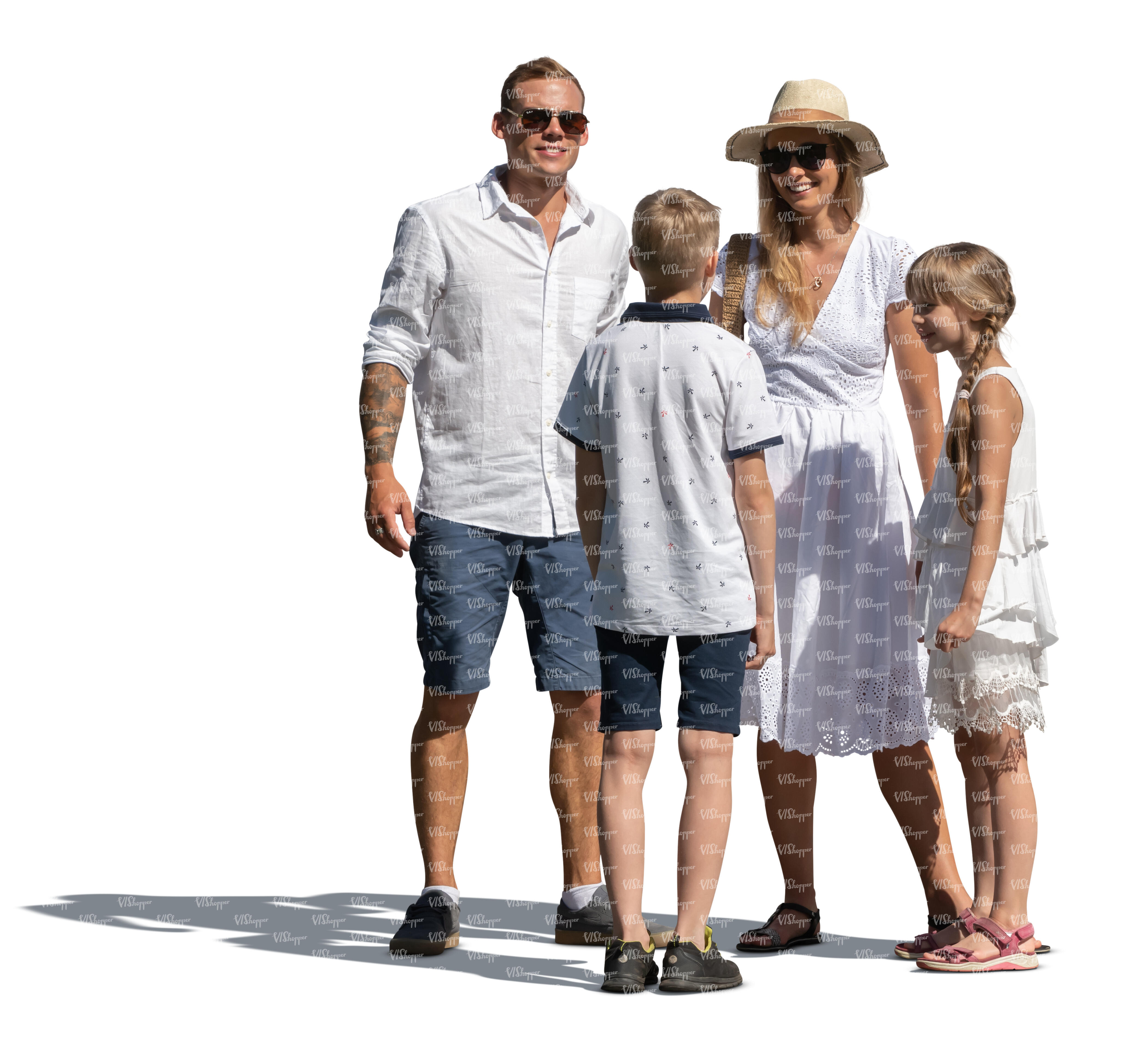 • cut out family in white summer clothes standing and talking