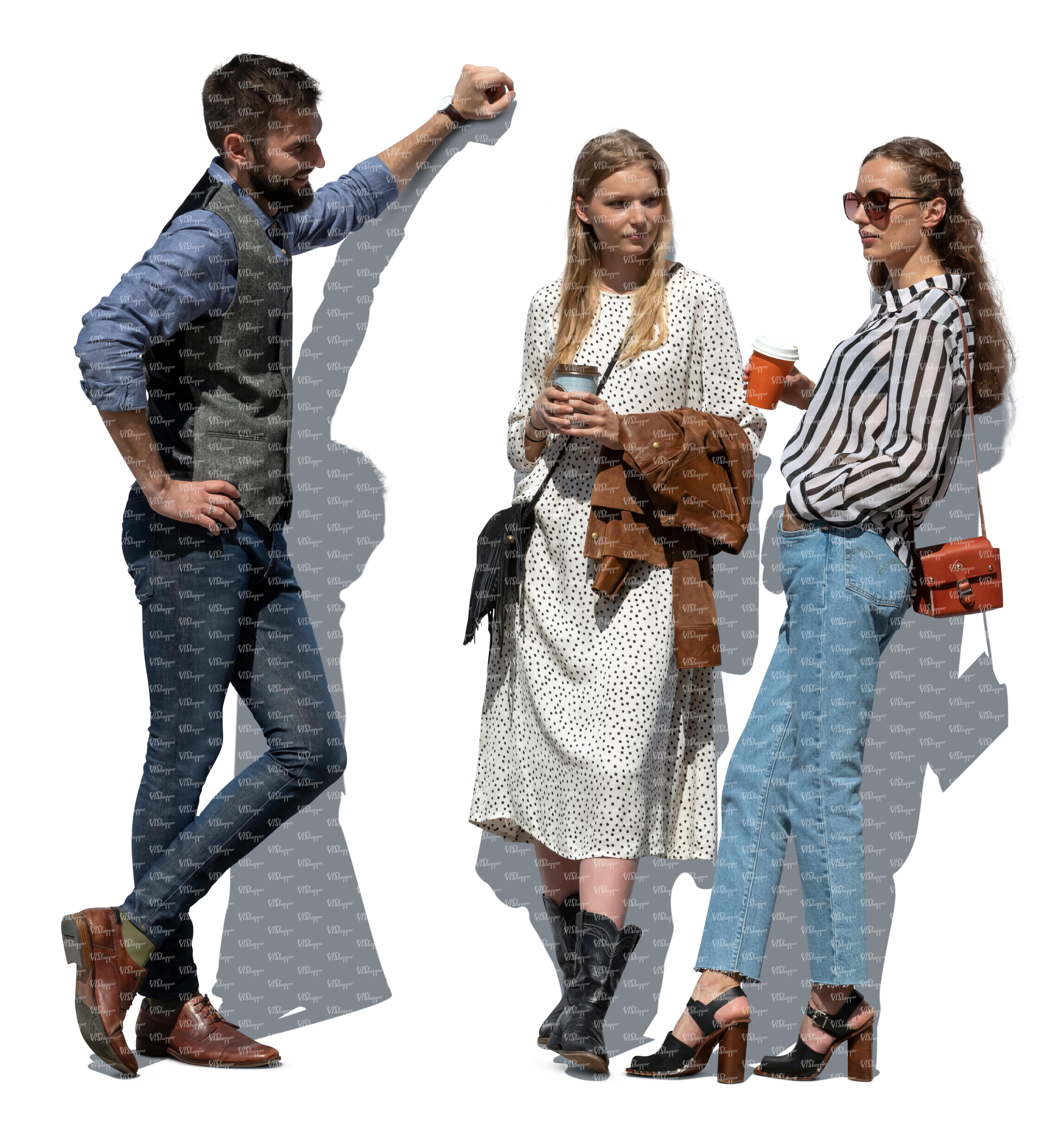 • cut out group of three friends standing in partial tree shade
