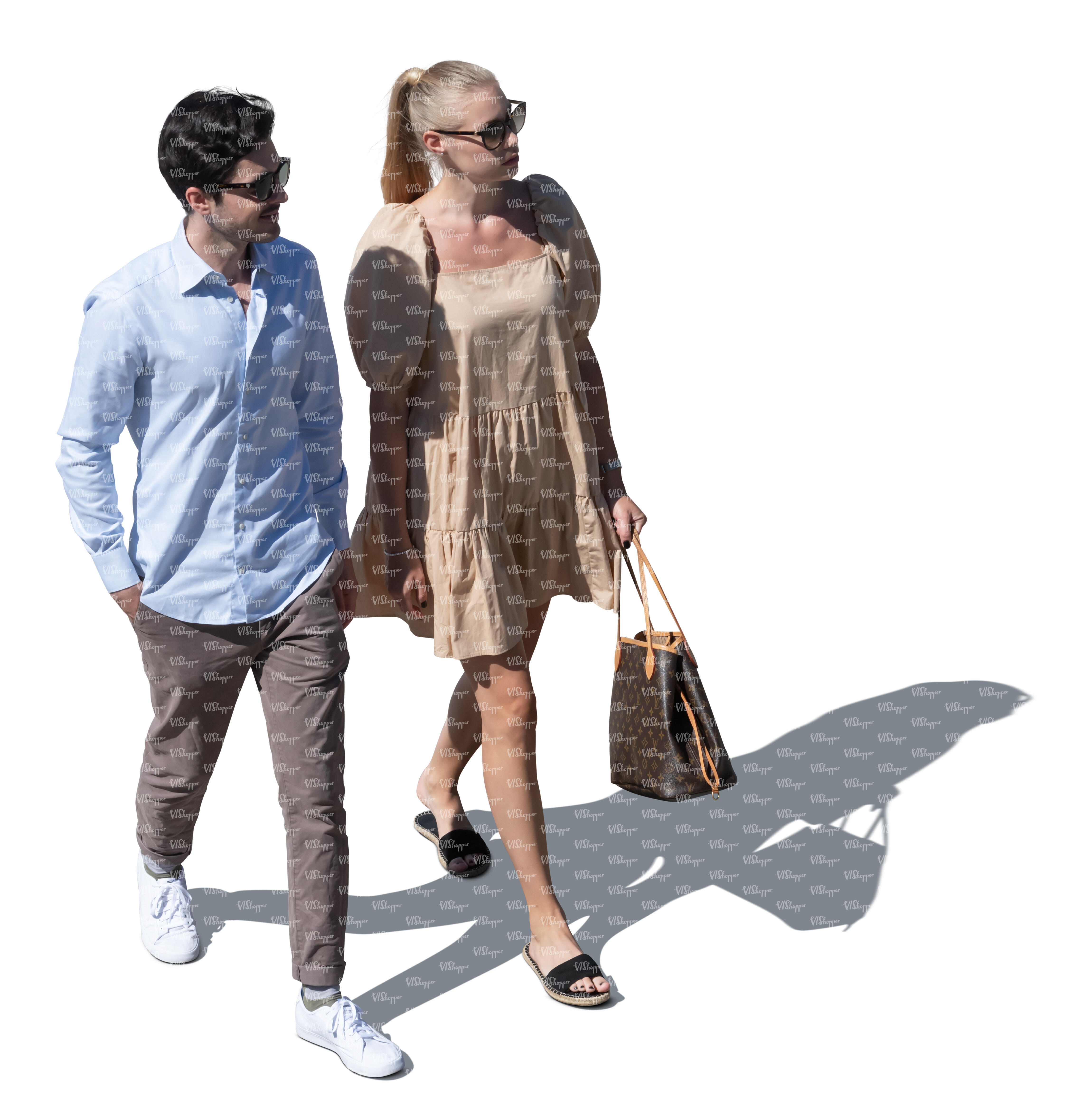 • cut out man and woman standing and talking while drinking refreshing drinks