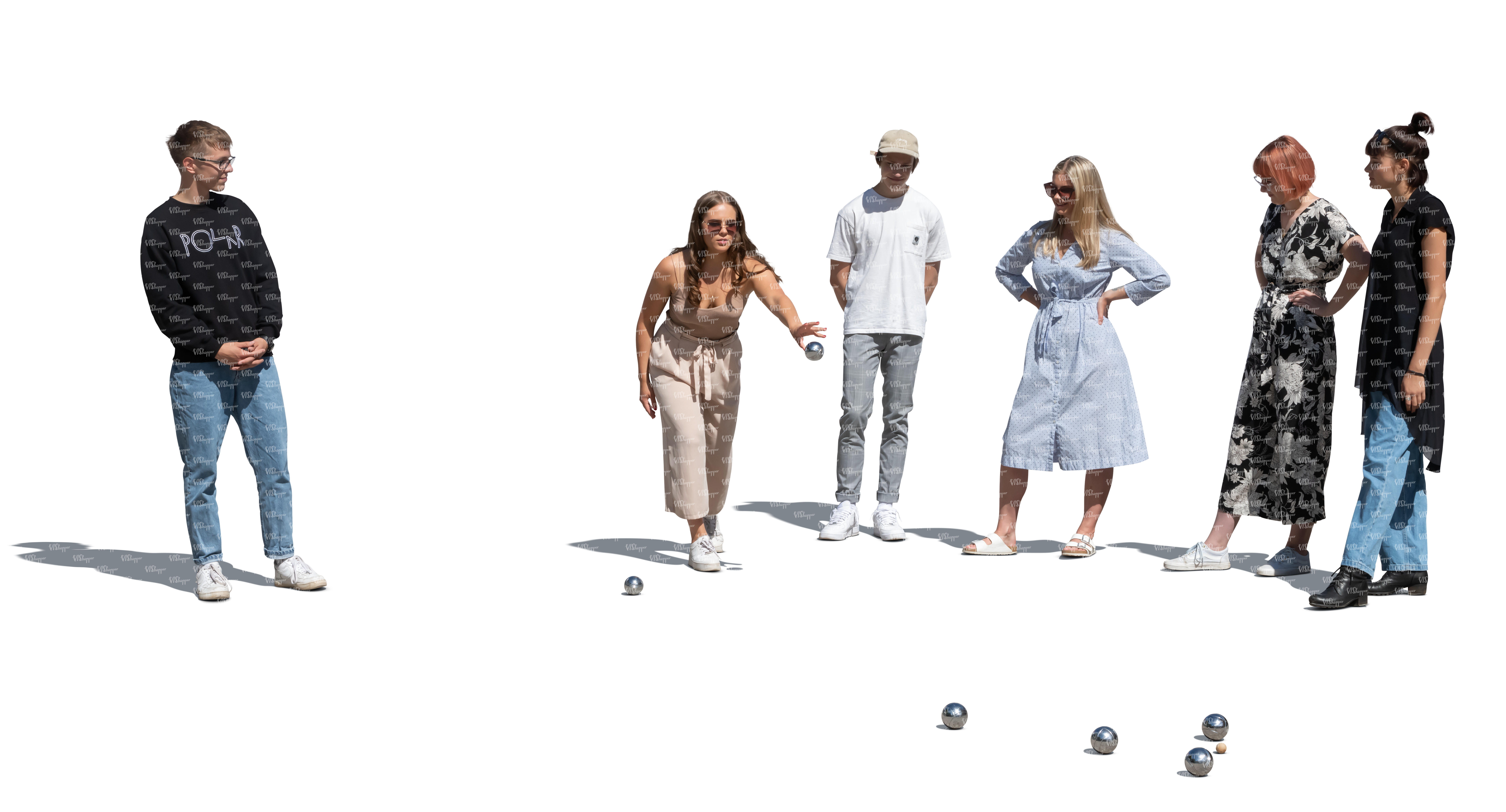 cut out group of young adults playing petanque