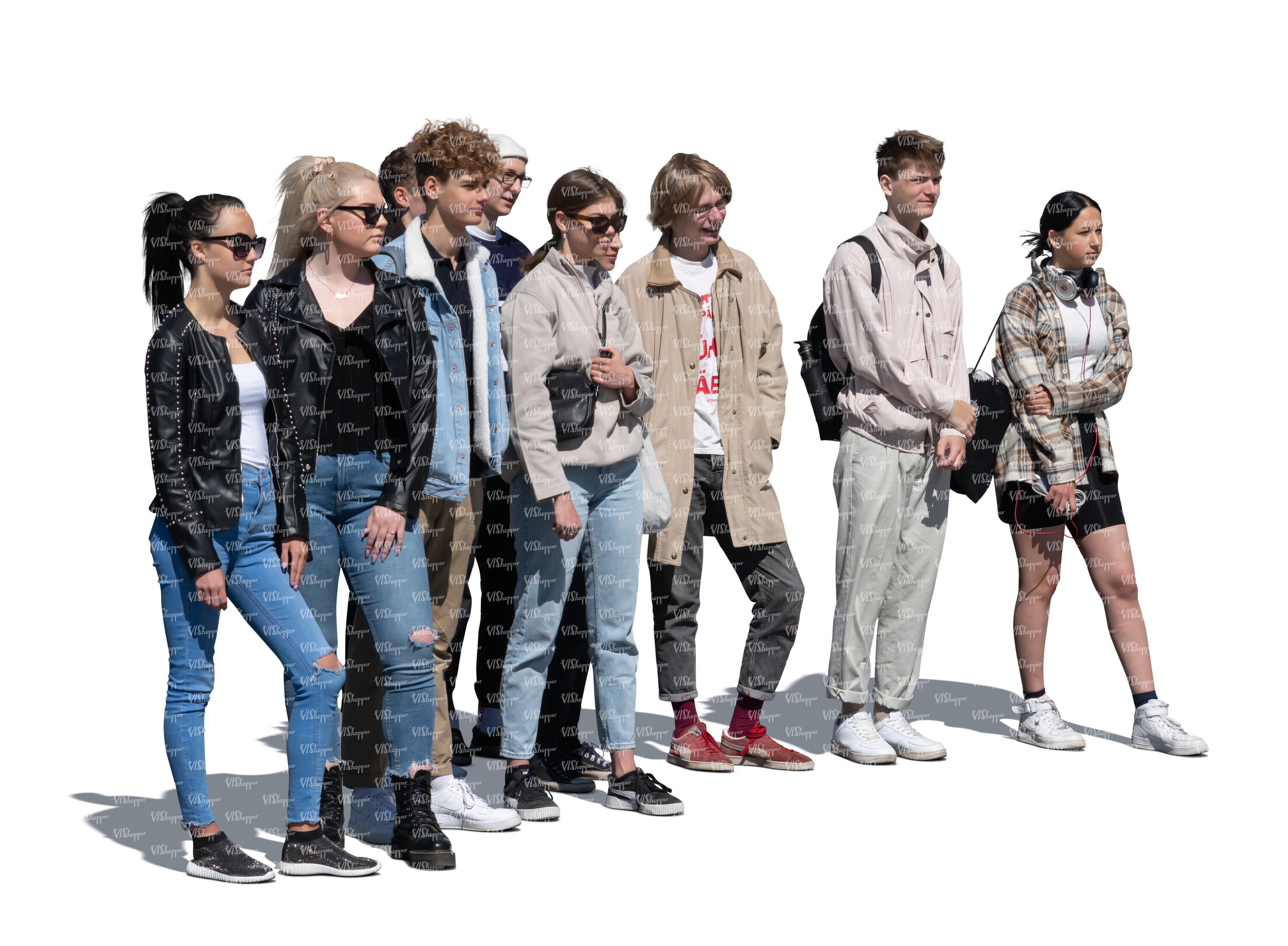 • cut out group of teenagers standing and looking in one direction