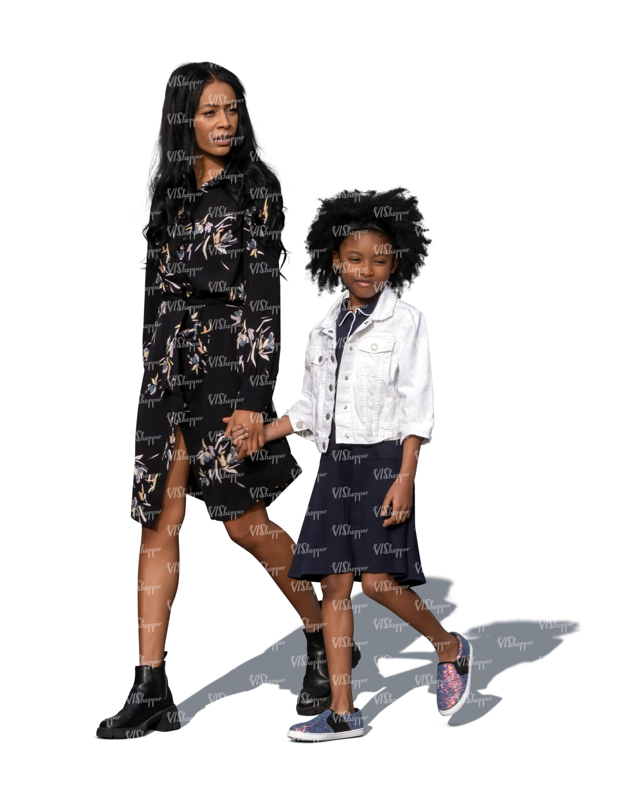 • cut out black woman walking hand in hand with her daughter