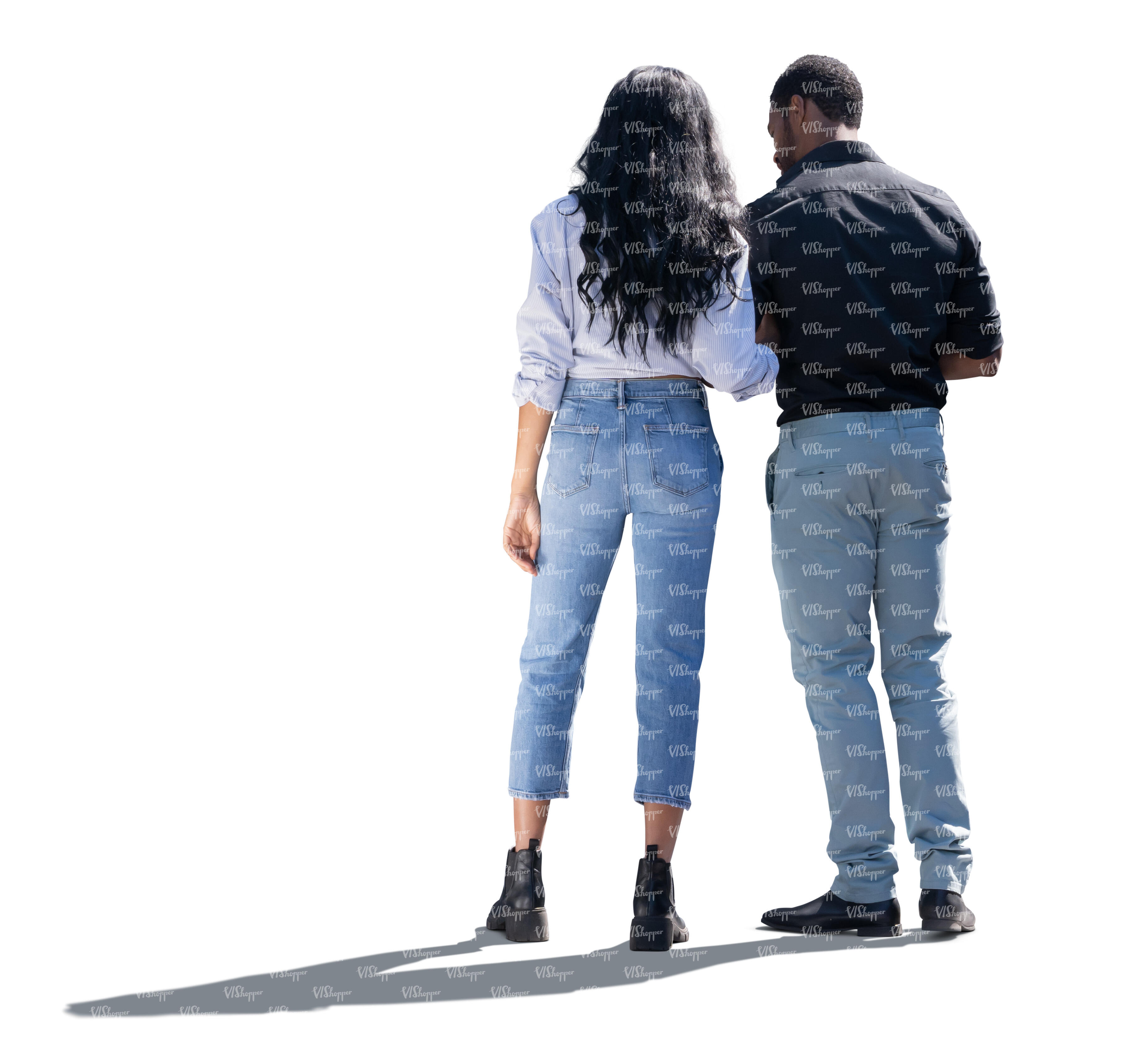 • cut out black backlit couple standing