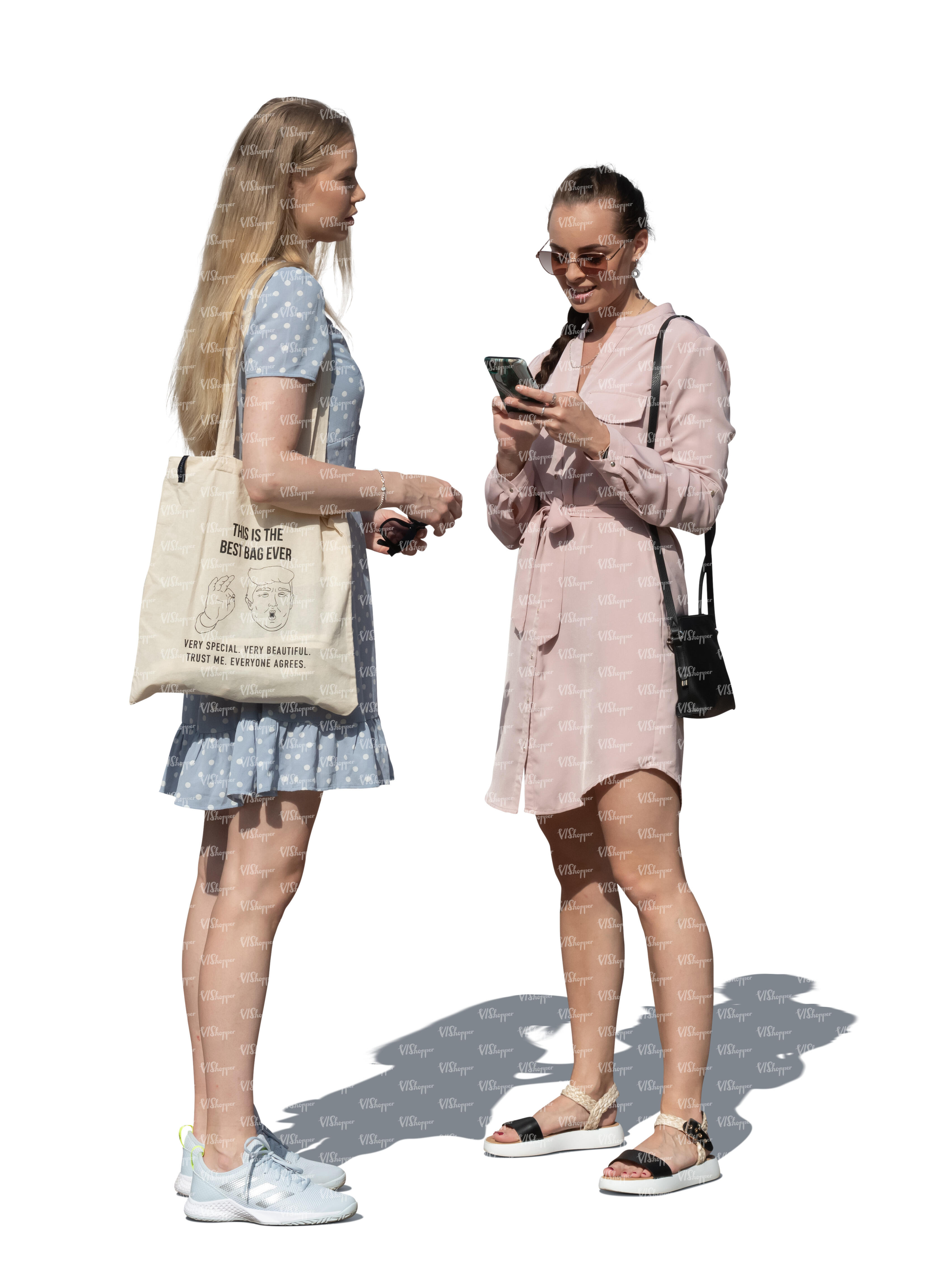 two cut out women standing and talking