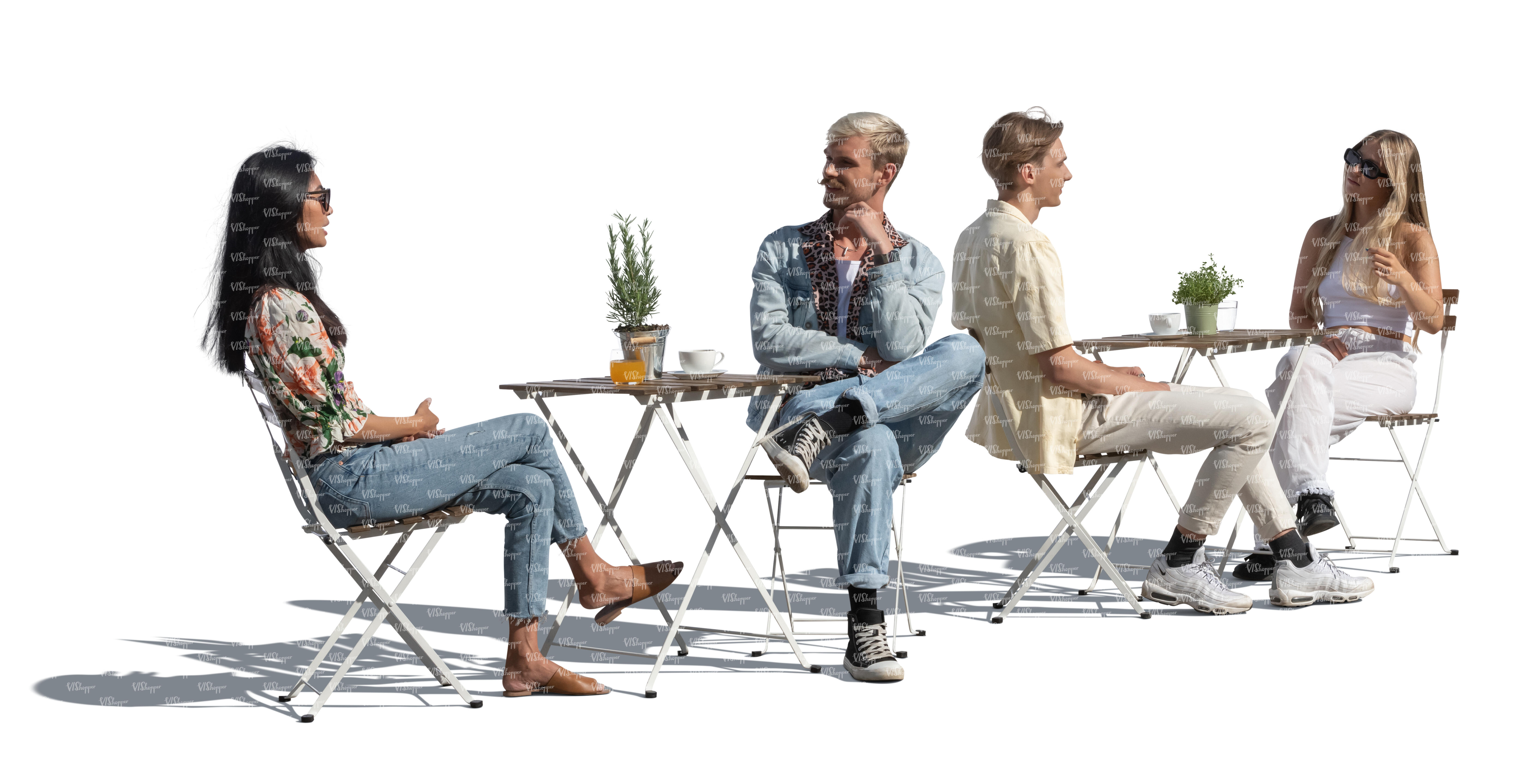 • cut out group of people sitting in a hipster cafe with pallet furniture