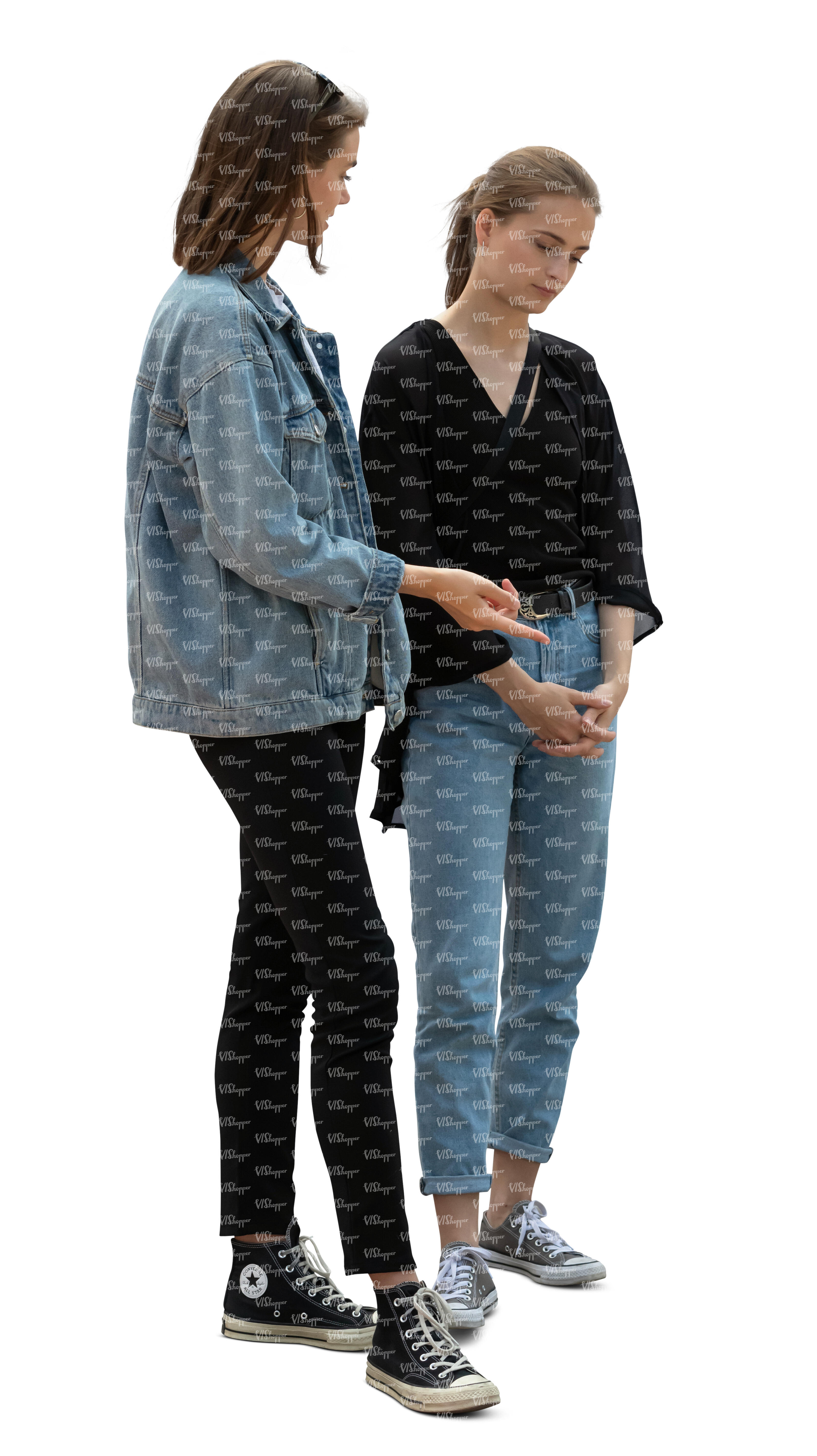 two cut out women standing and discussing