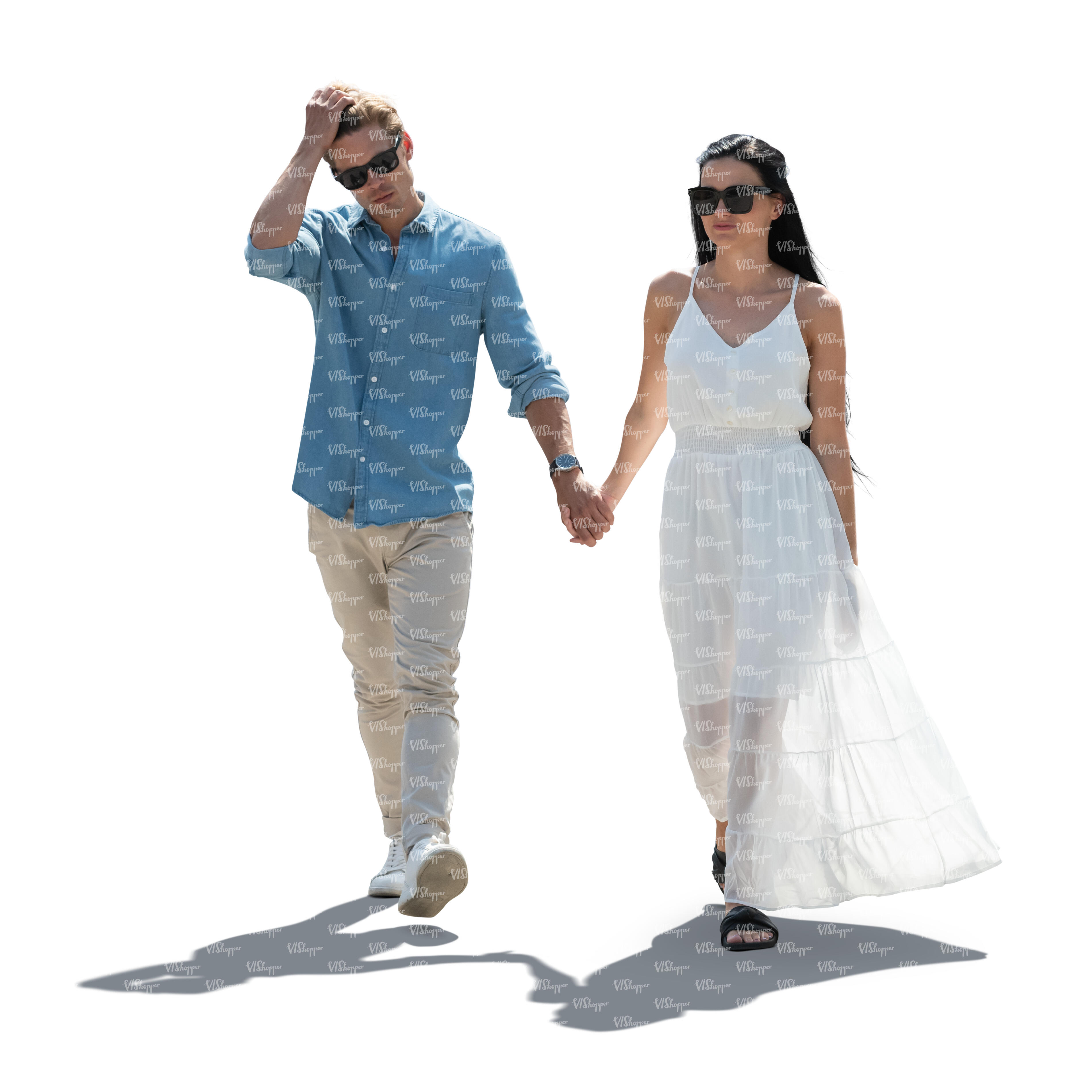 • cut out man and woman standing and talking while drinking refreshing drinks