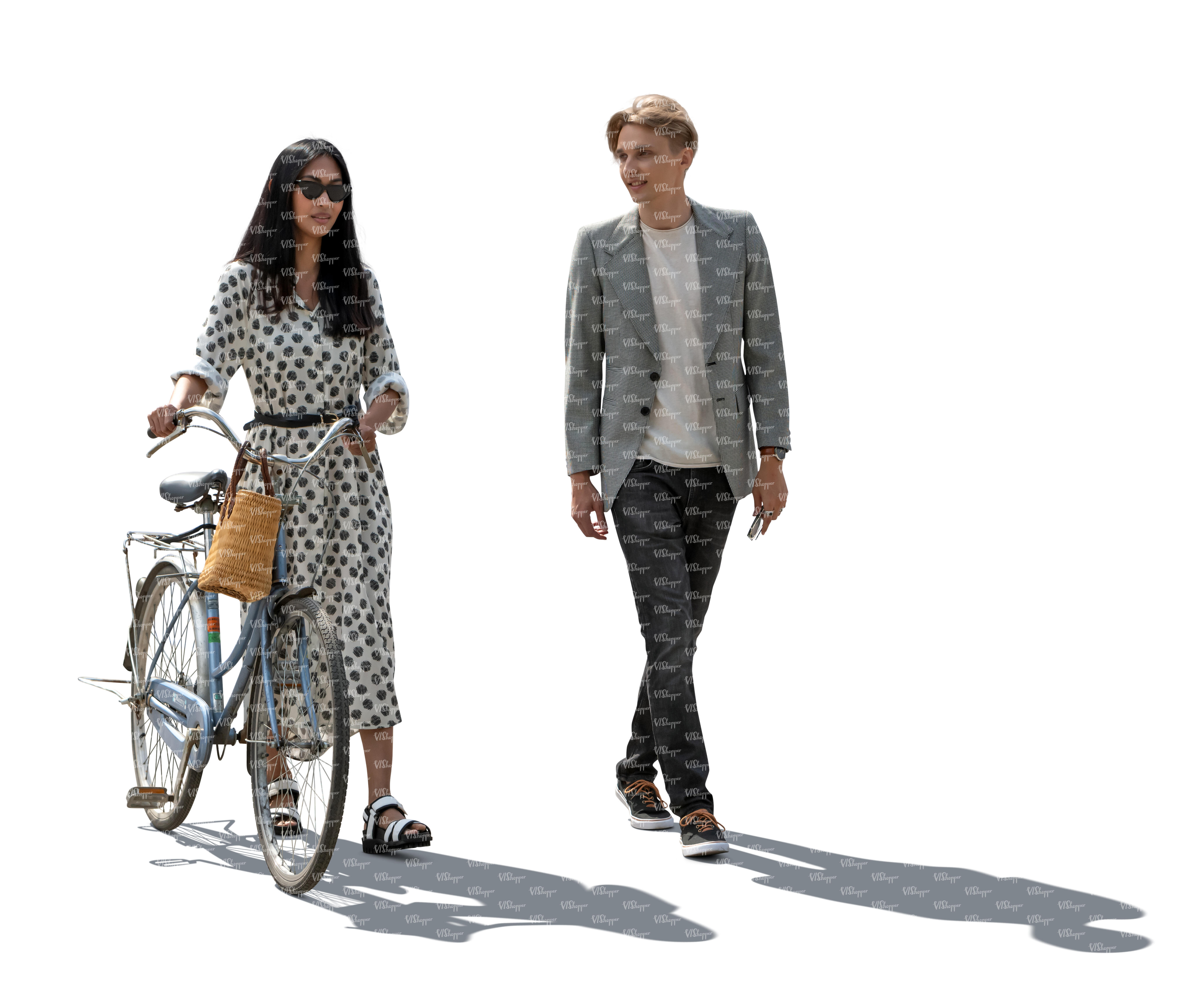 • cut out man and woman standing and talking while drinking refreshing drinks