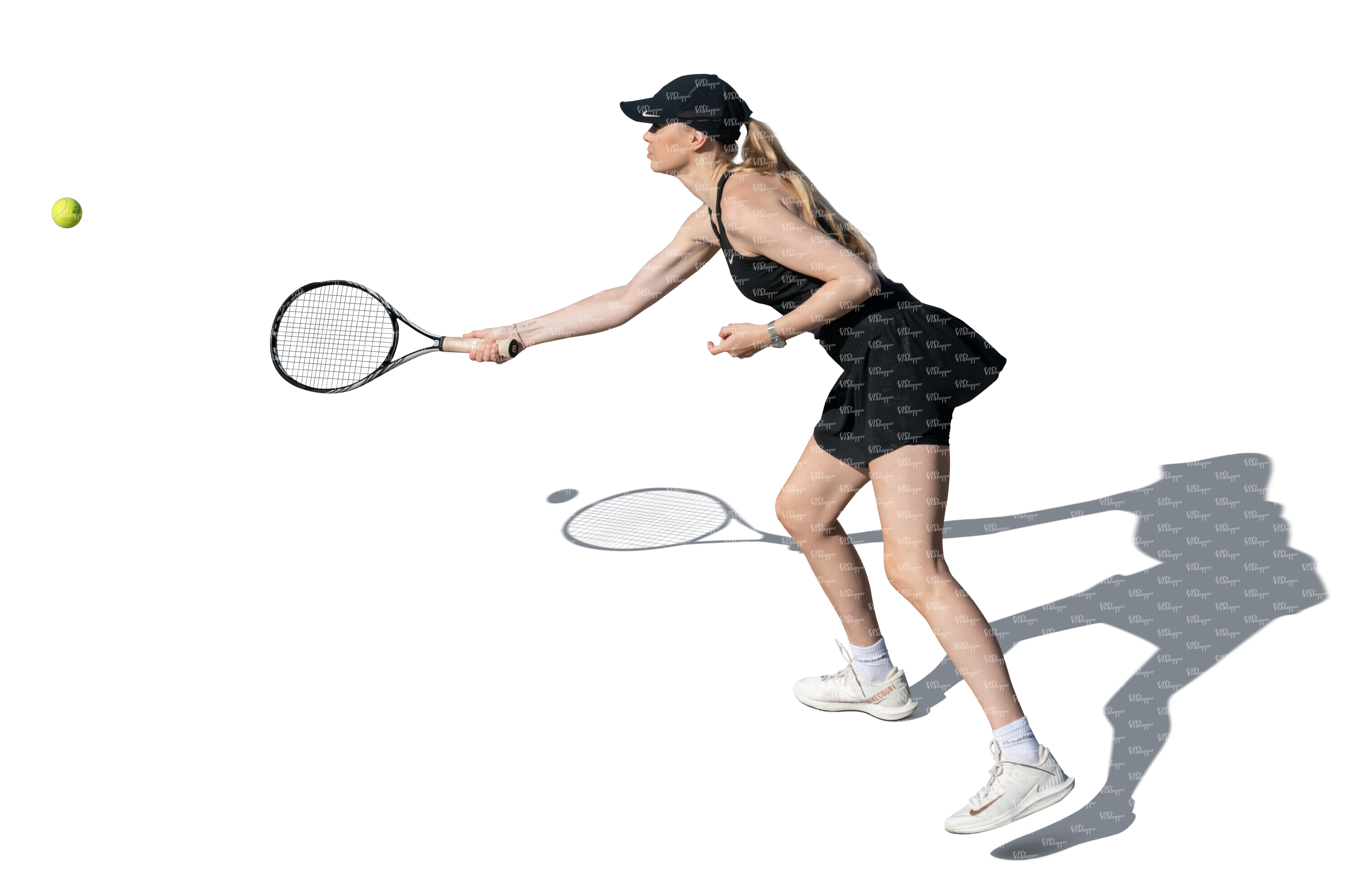 • cut out woman playing tennis seen from above
