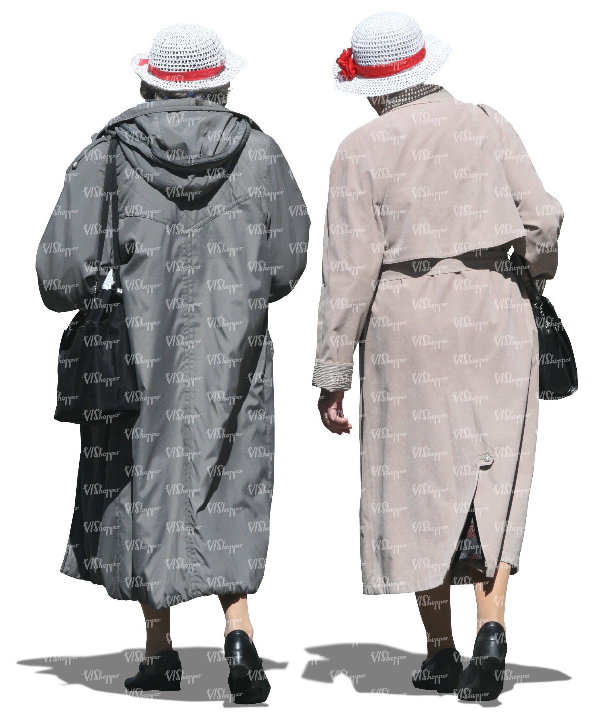• two elderly women wearing coats walking