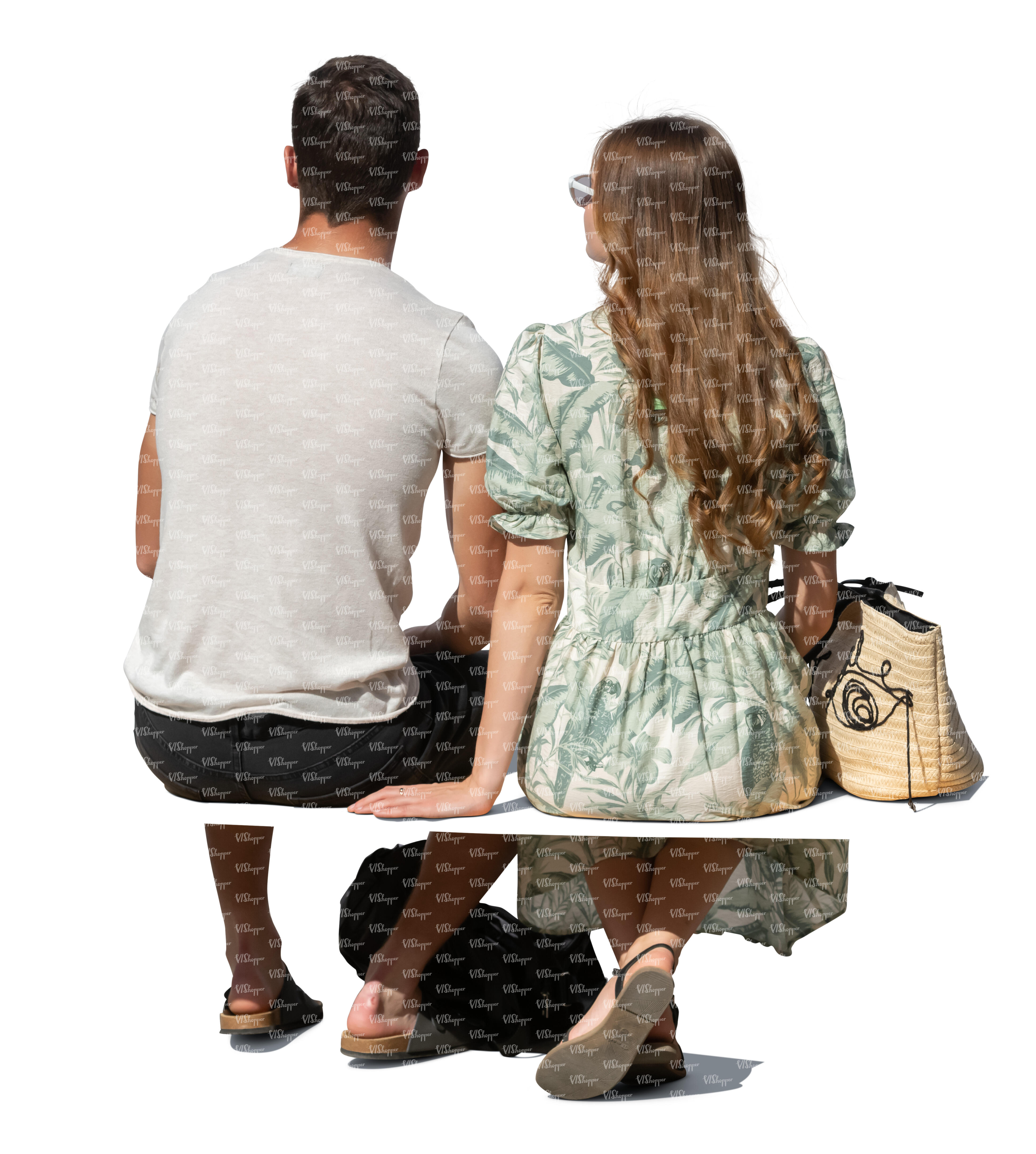 • cut out man and woman sitting outside