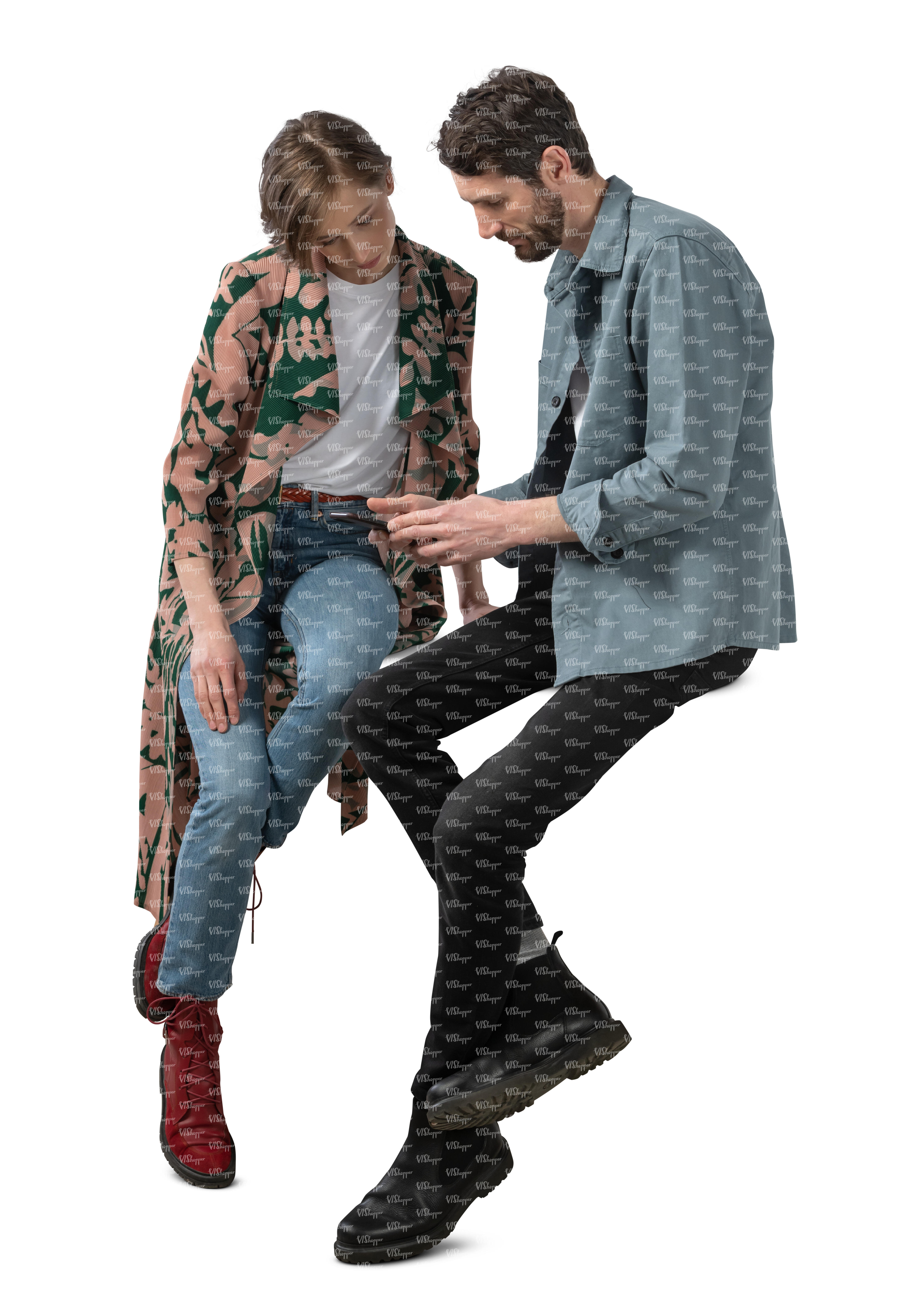 • cut out group of people sitting in a hipster cafe with pallet furniture
