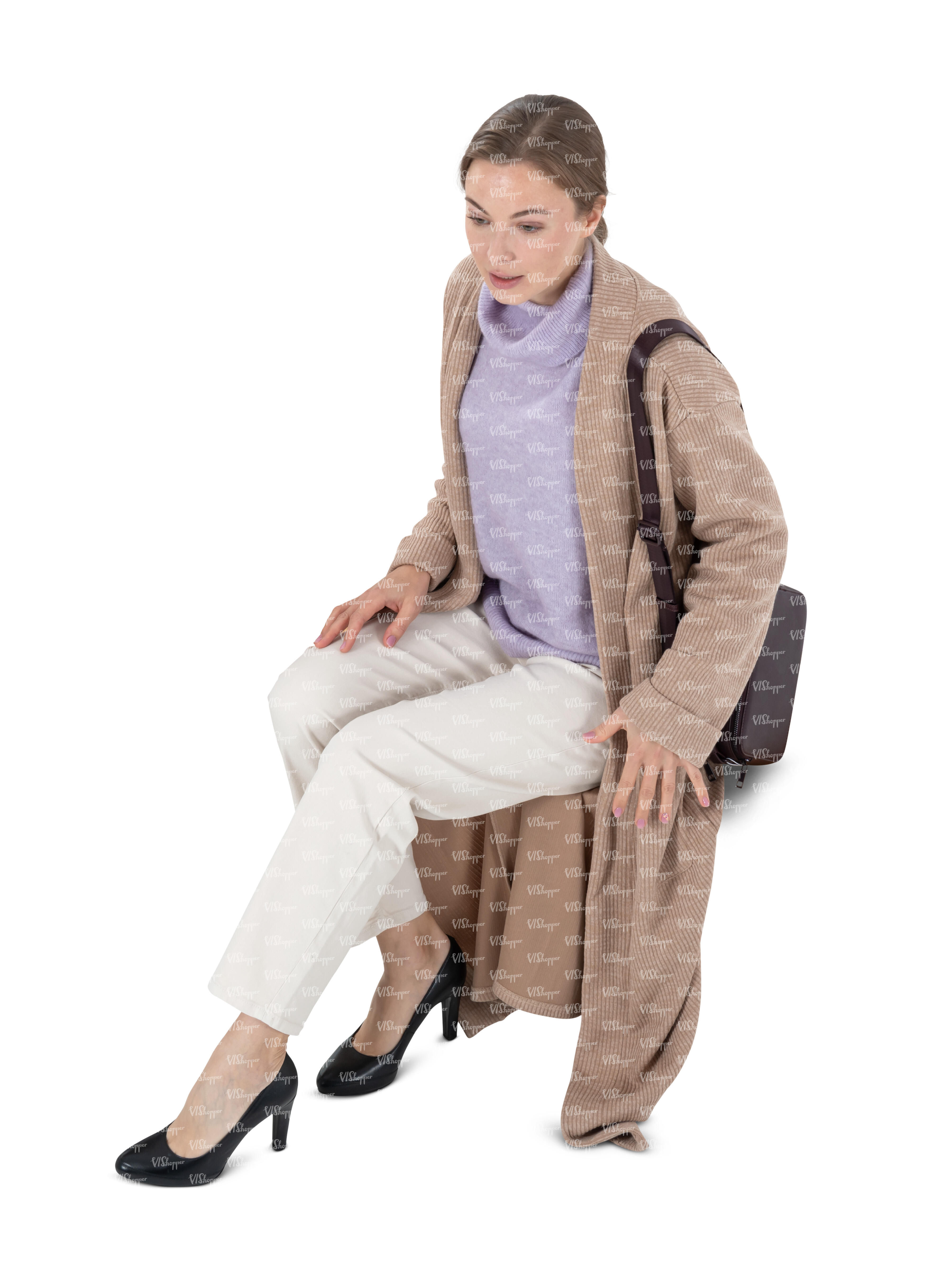 • cut out woman sitting seen from above