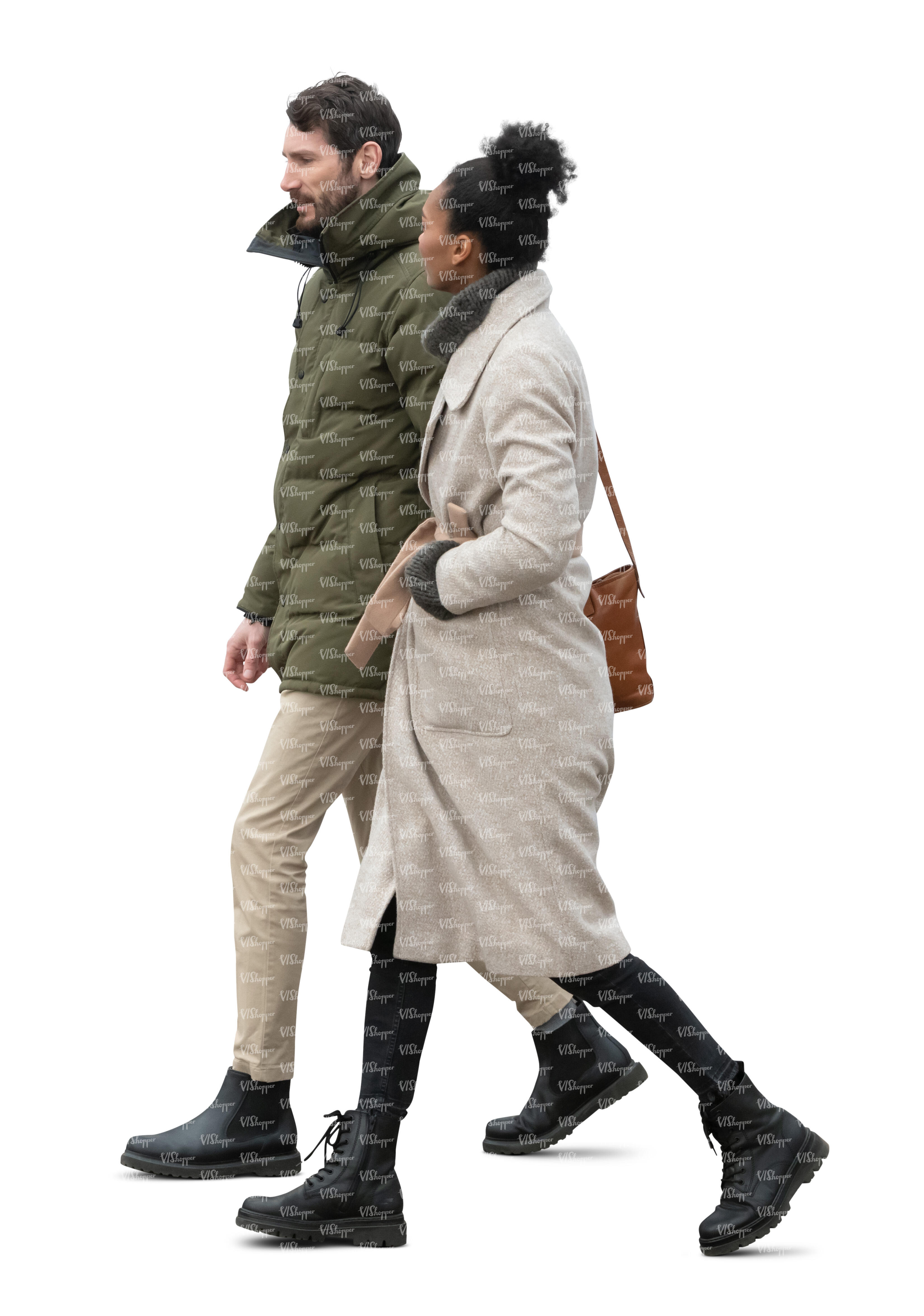 • cut out man and woman walking on a cold day