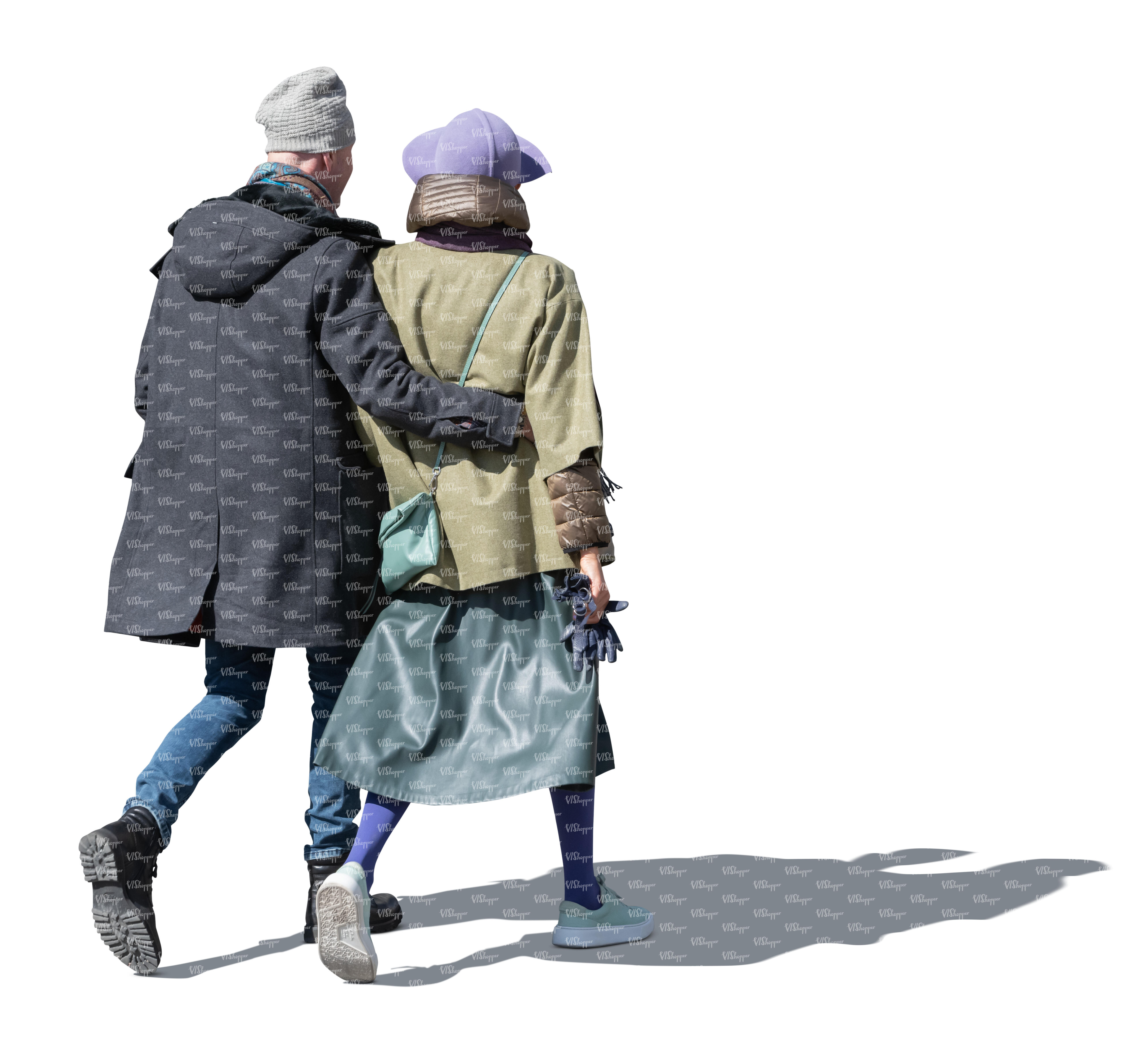 • cut out man and woman walking on a cold day