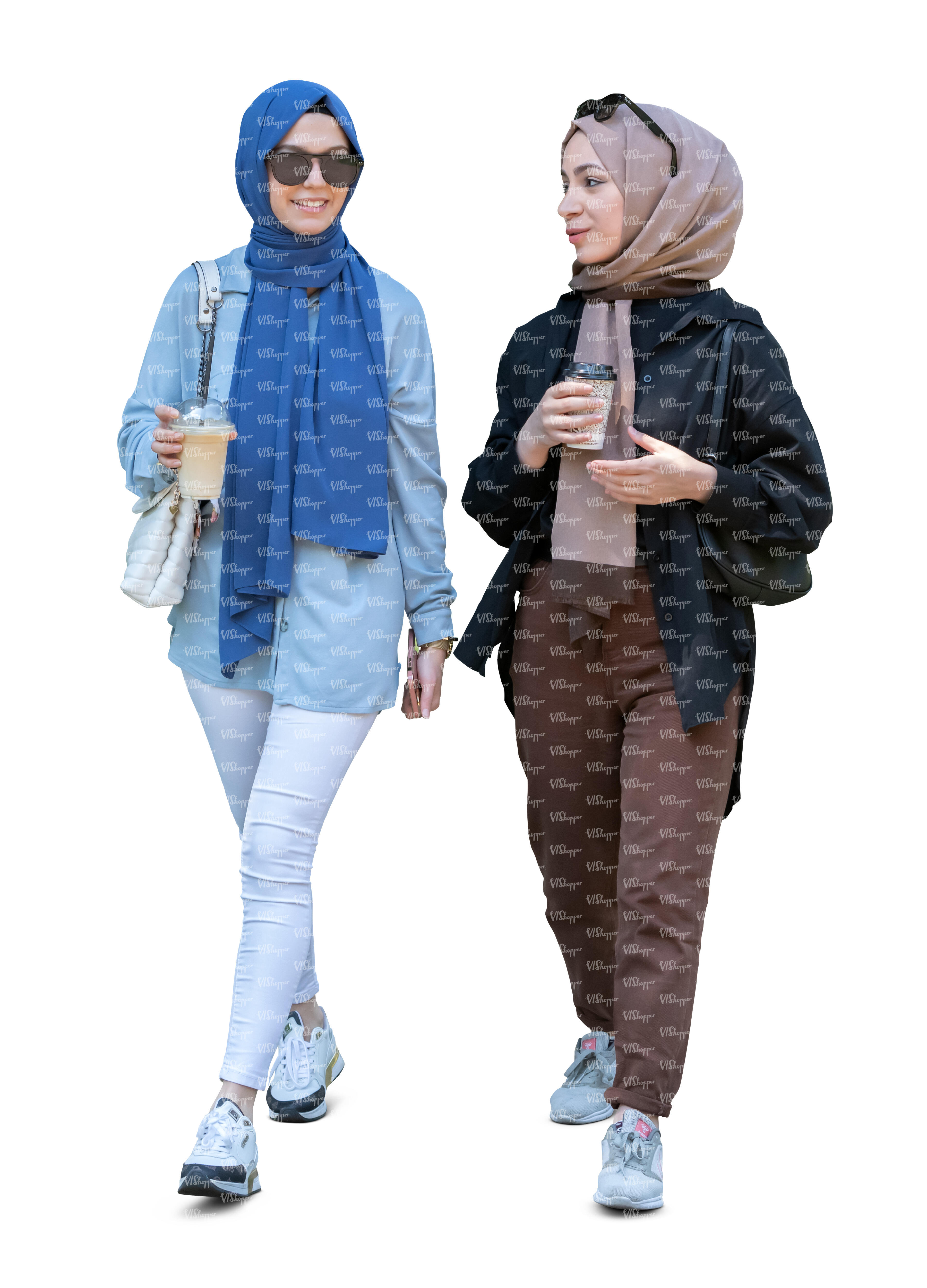 • cut out man and woman standing and talking while drinking refreshing drinks