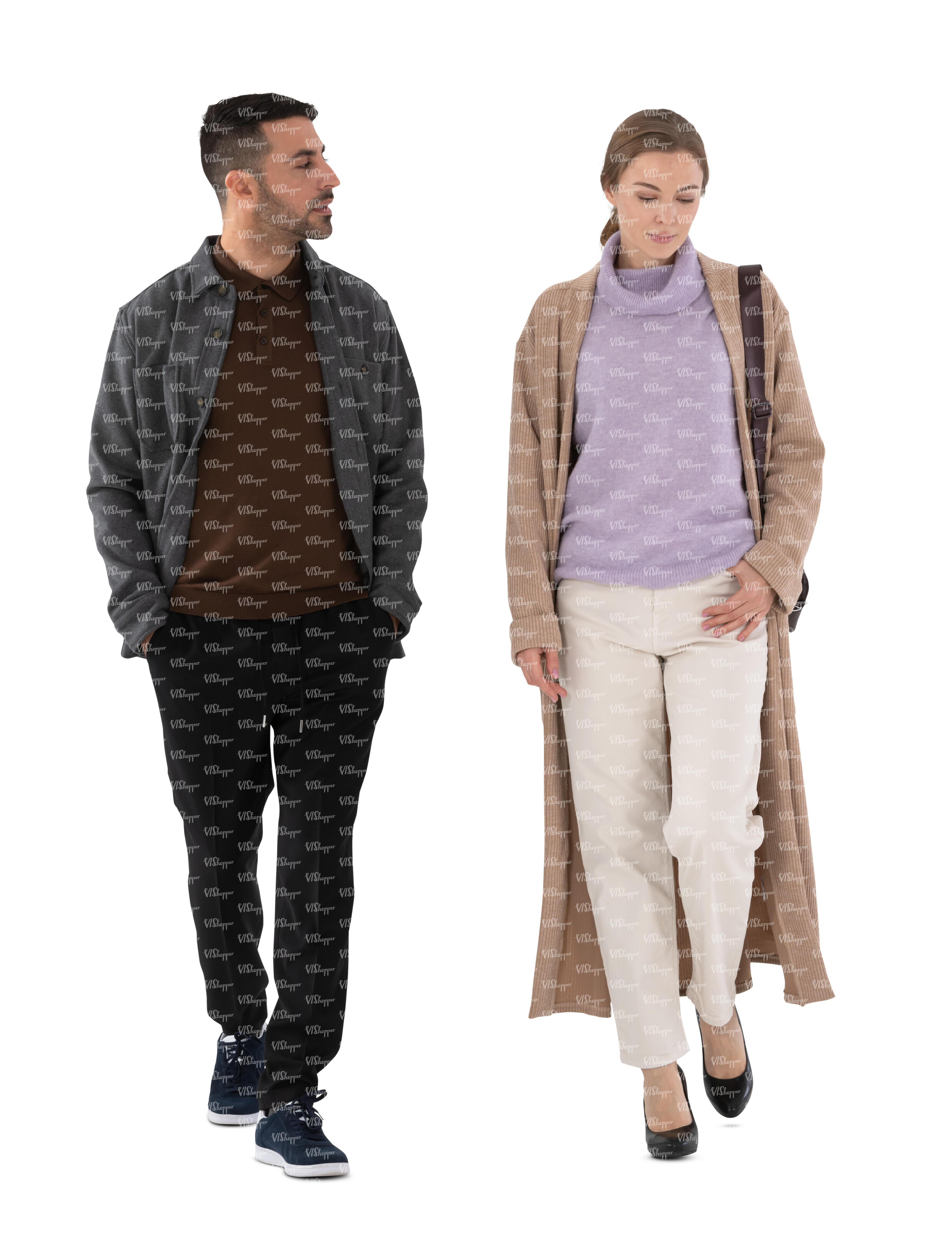 • cut out man and woman standing and talking while drinking refreshing drinks
