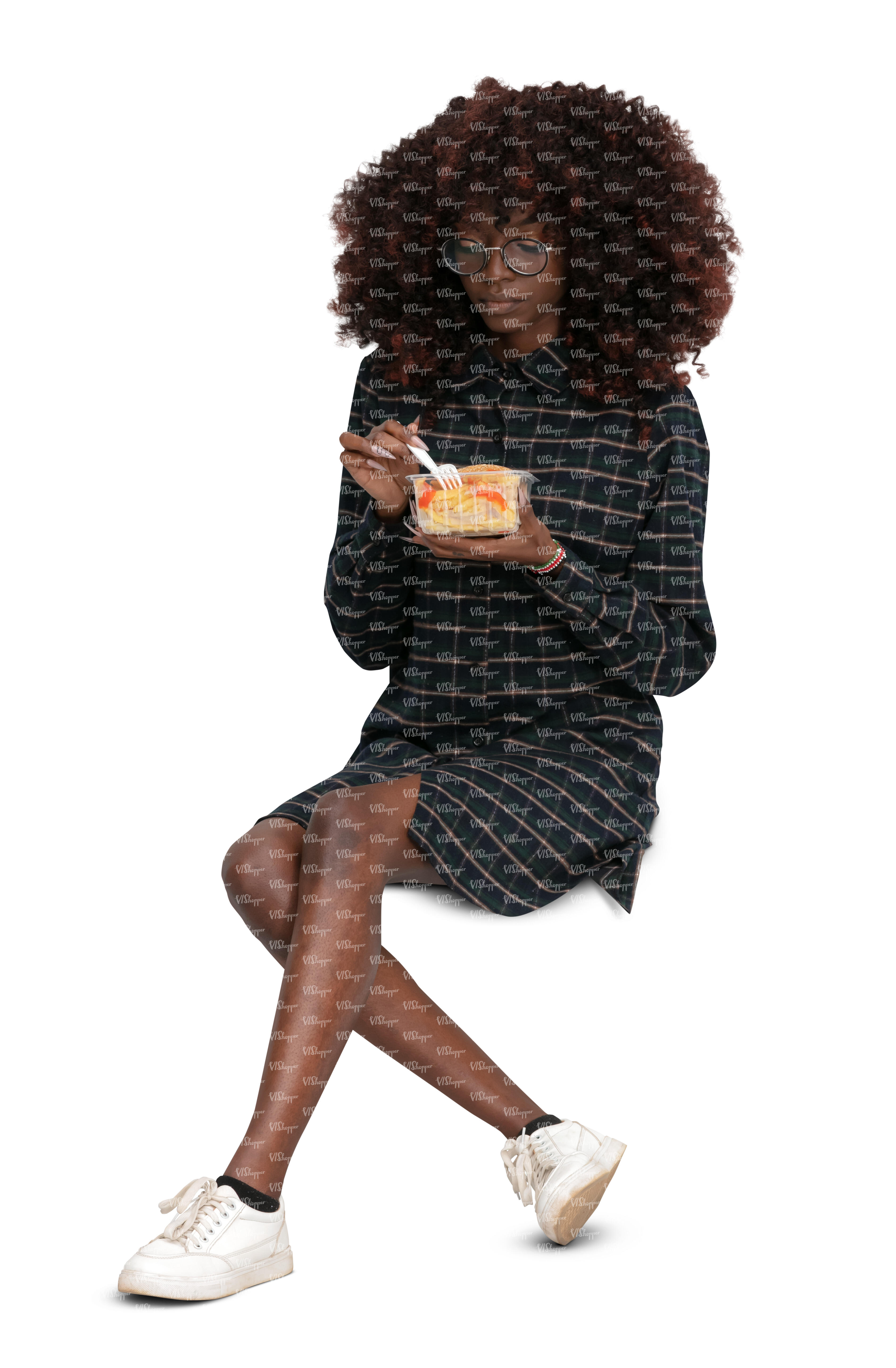• cut out woman sitting and eating salad