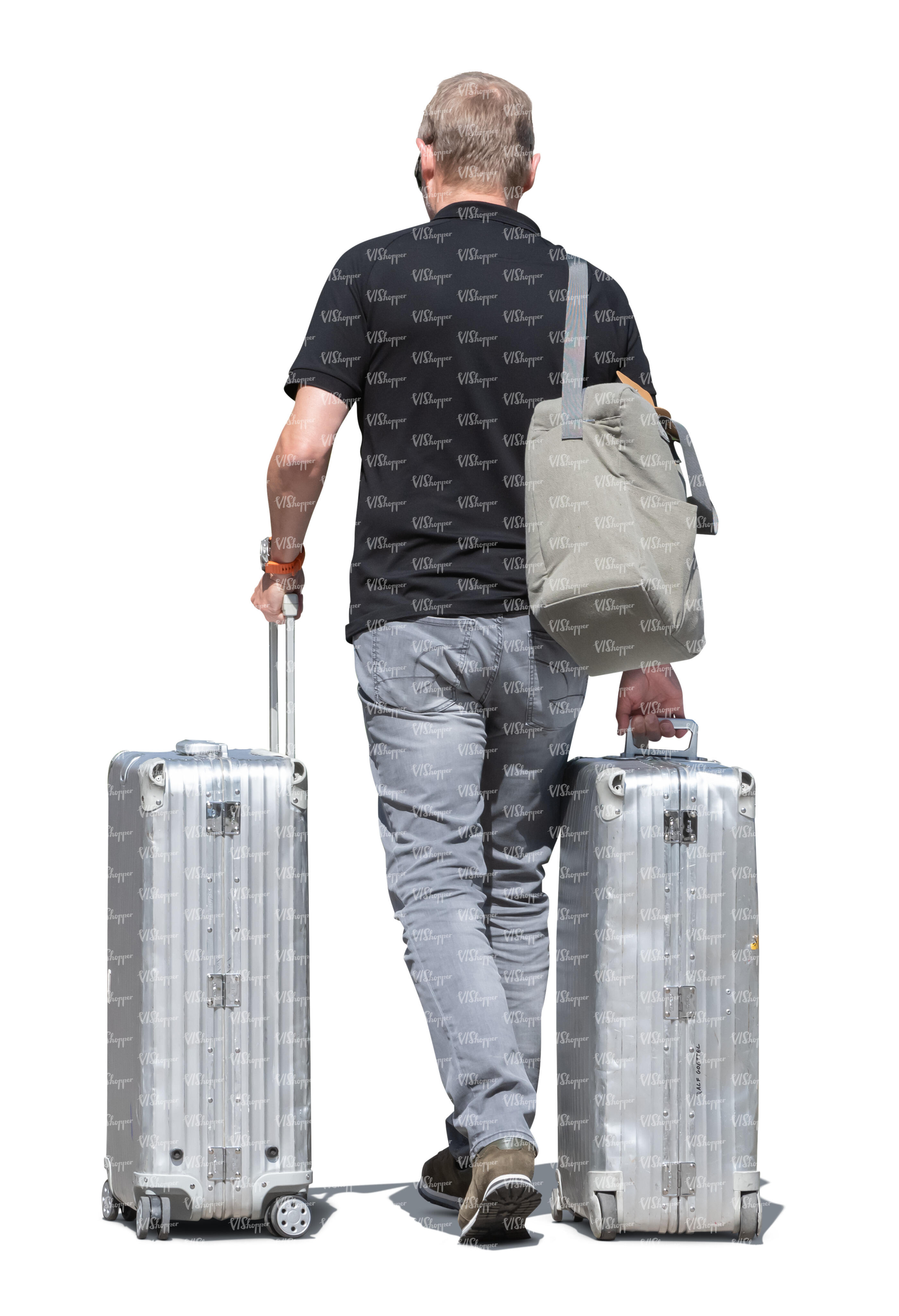 • cut out man with two big suitcases walking
