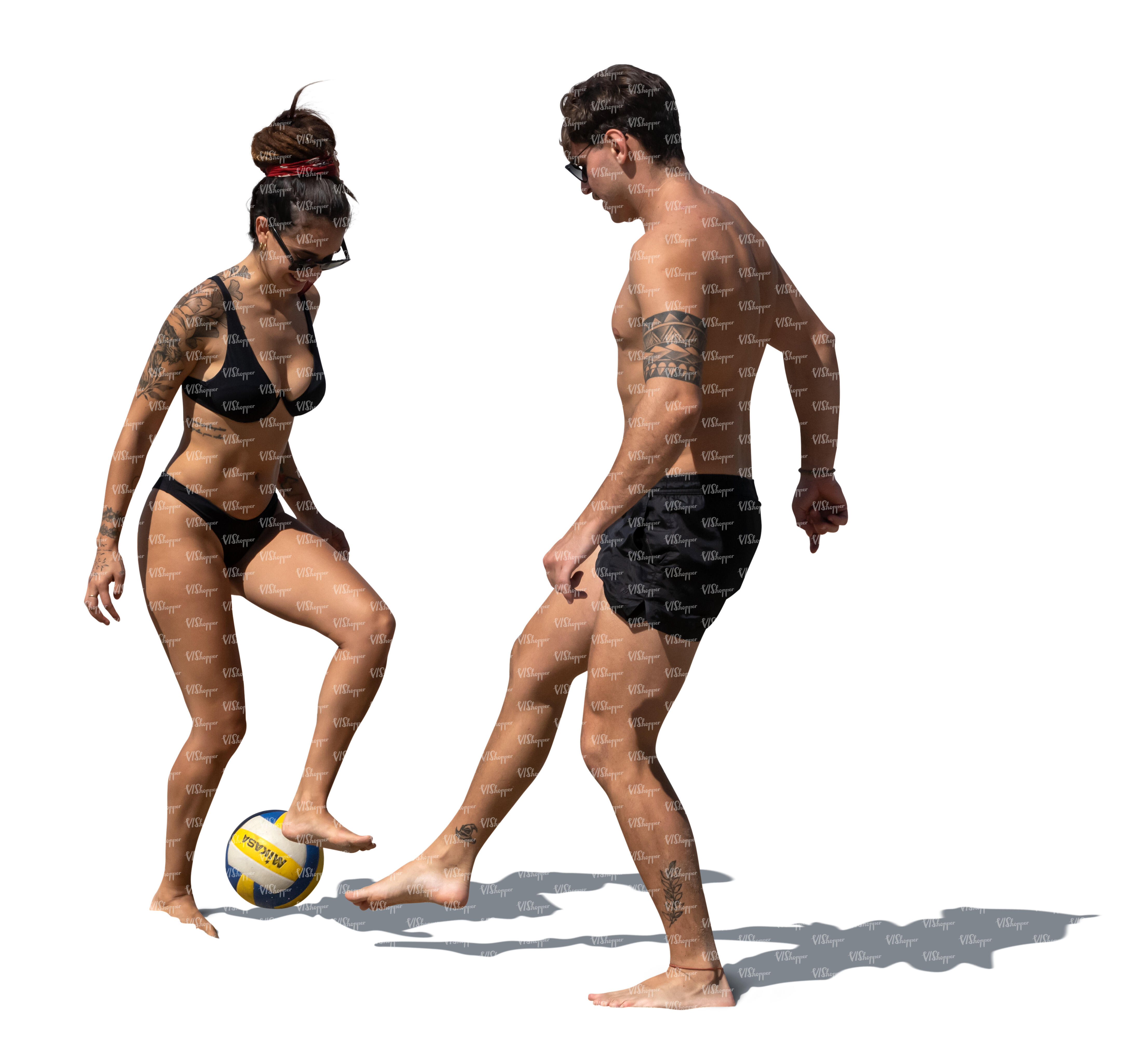 • cut out man and woman at the beach playing football