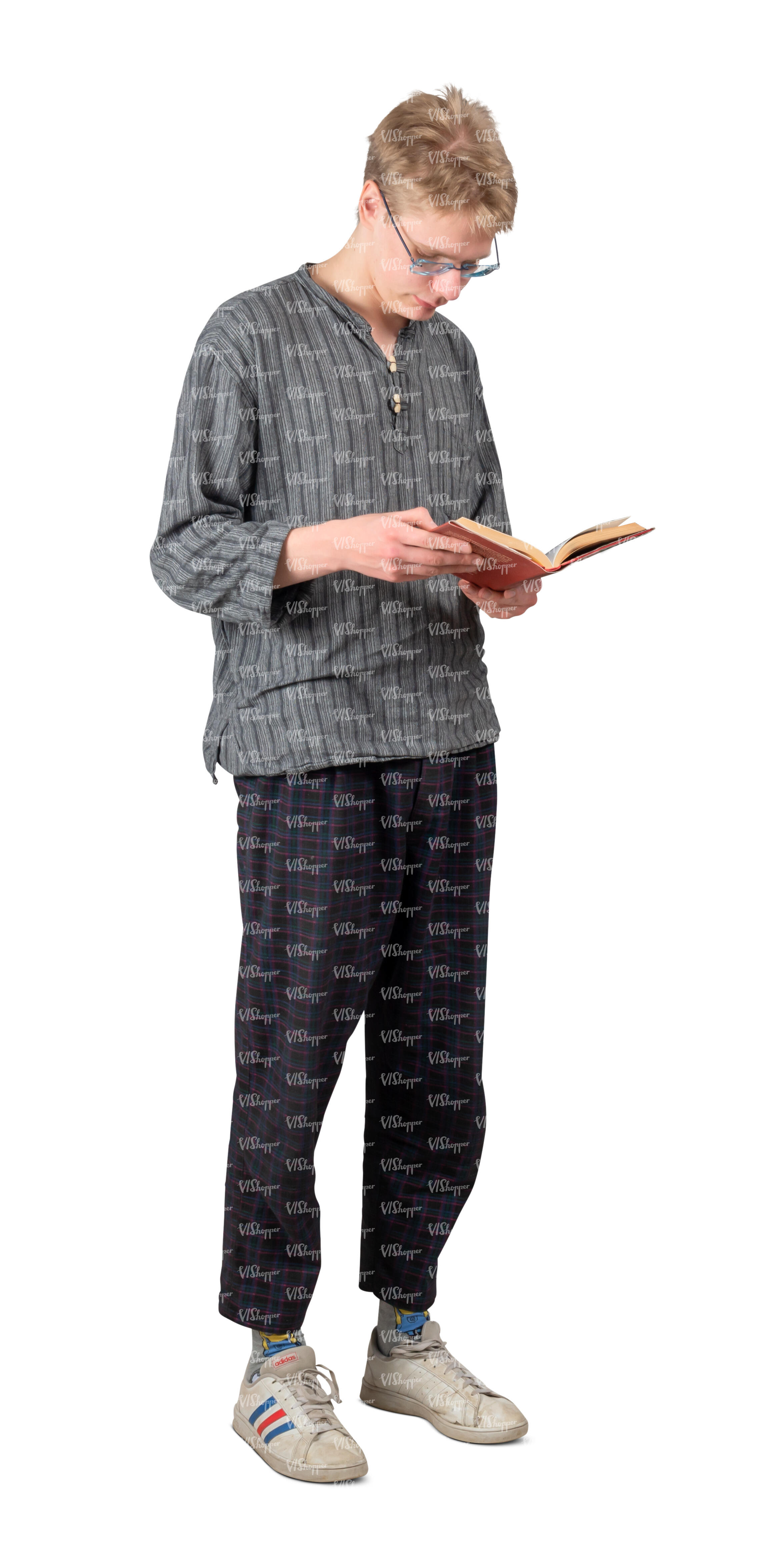 • cut out young man standing and reading a book