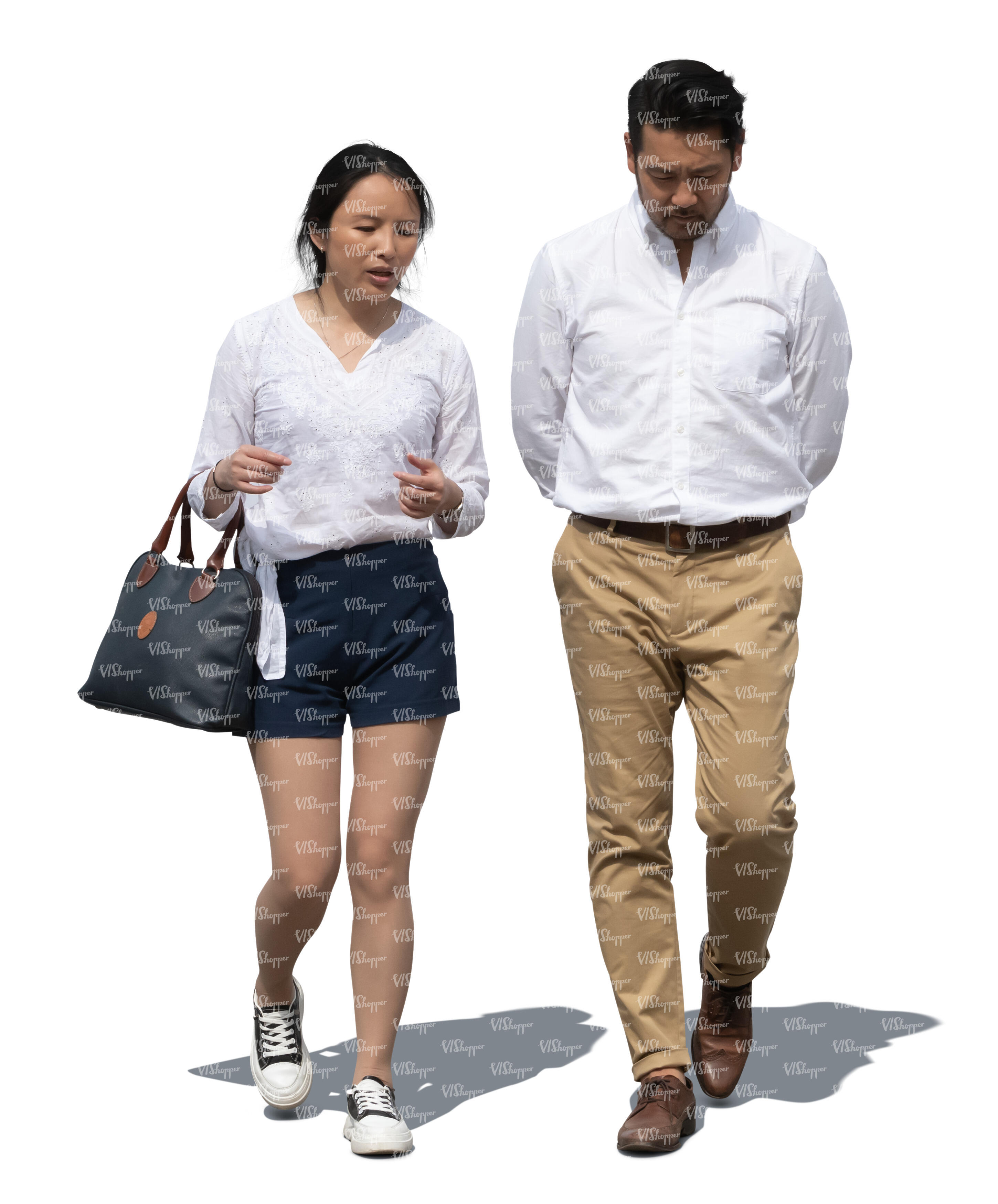 • two asian people walking side by side