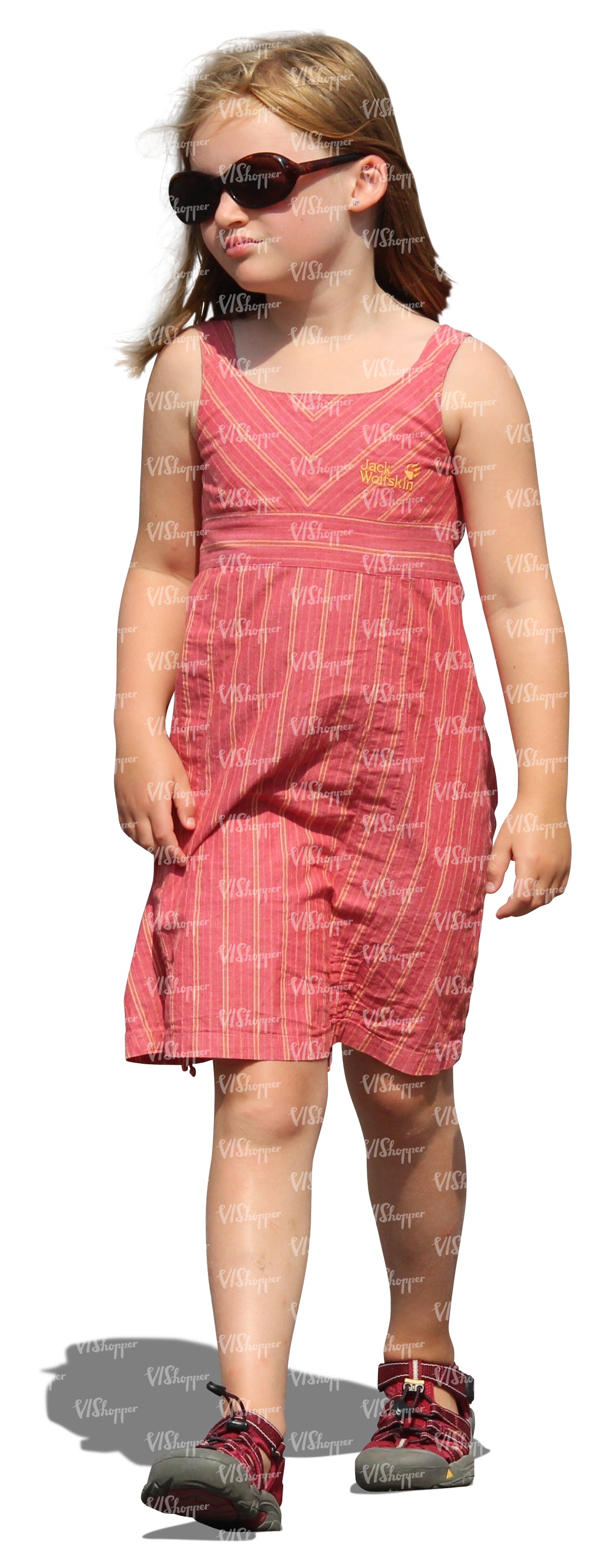 cut out girl in a pink dress walking