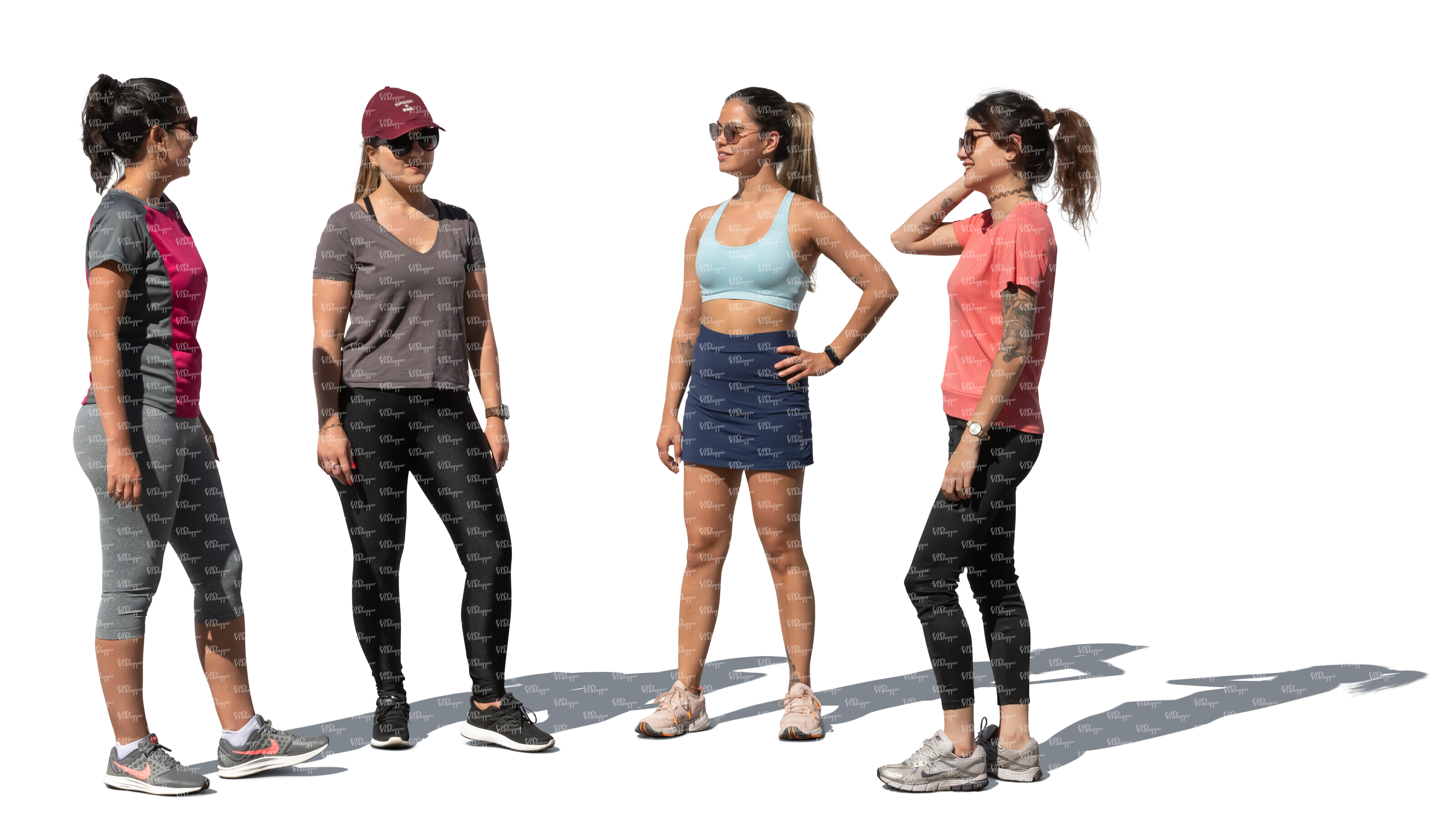 • cut out four sporty women standig and talking