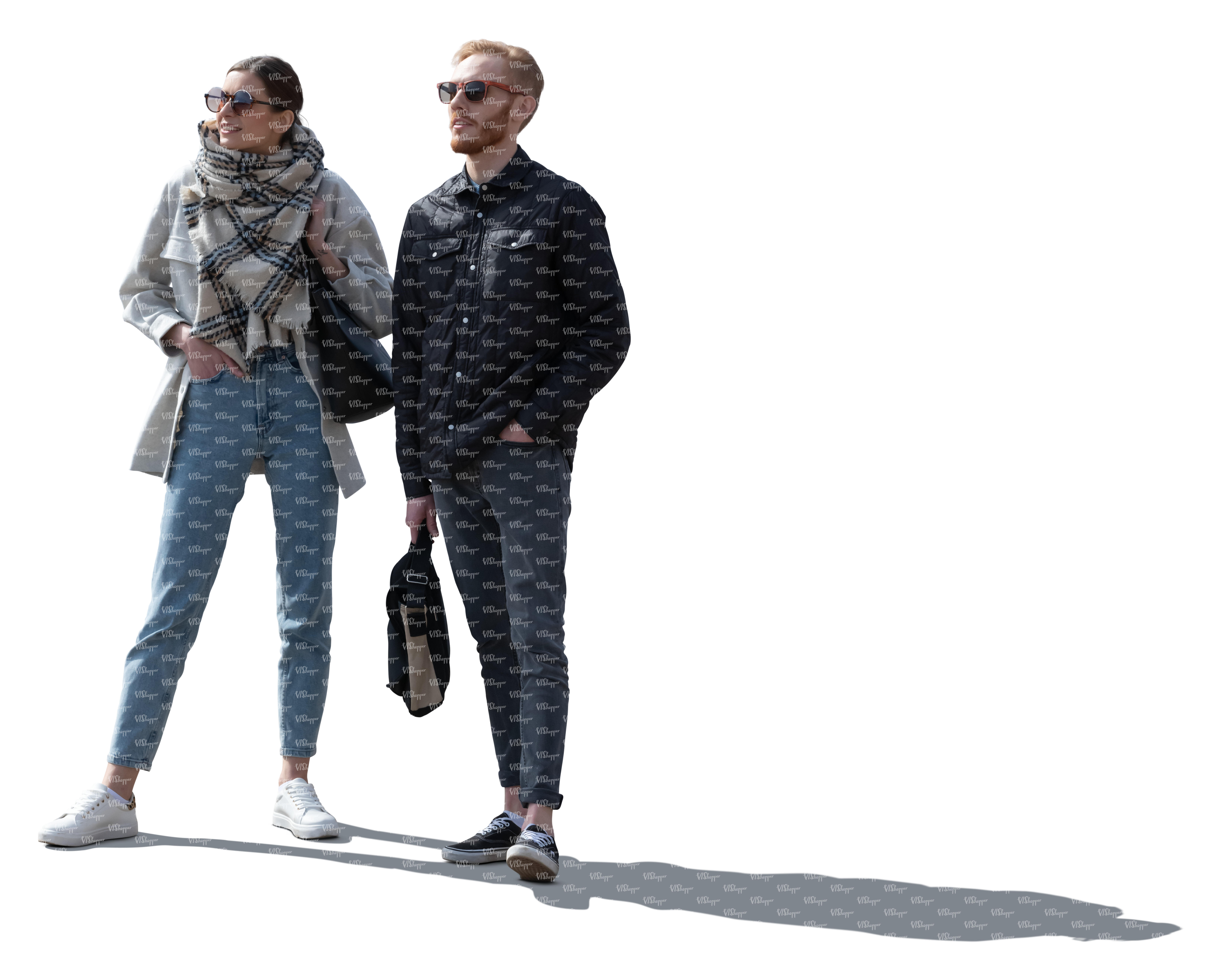 • cut out man and woman walking on a cold day