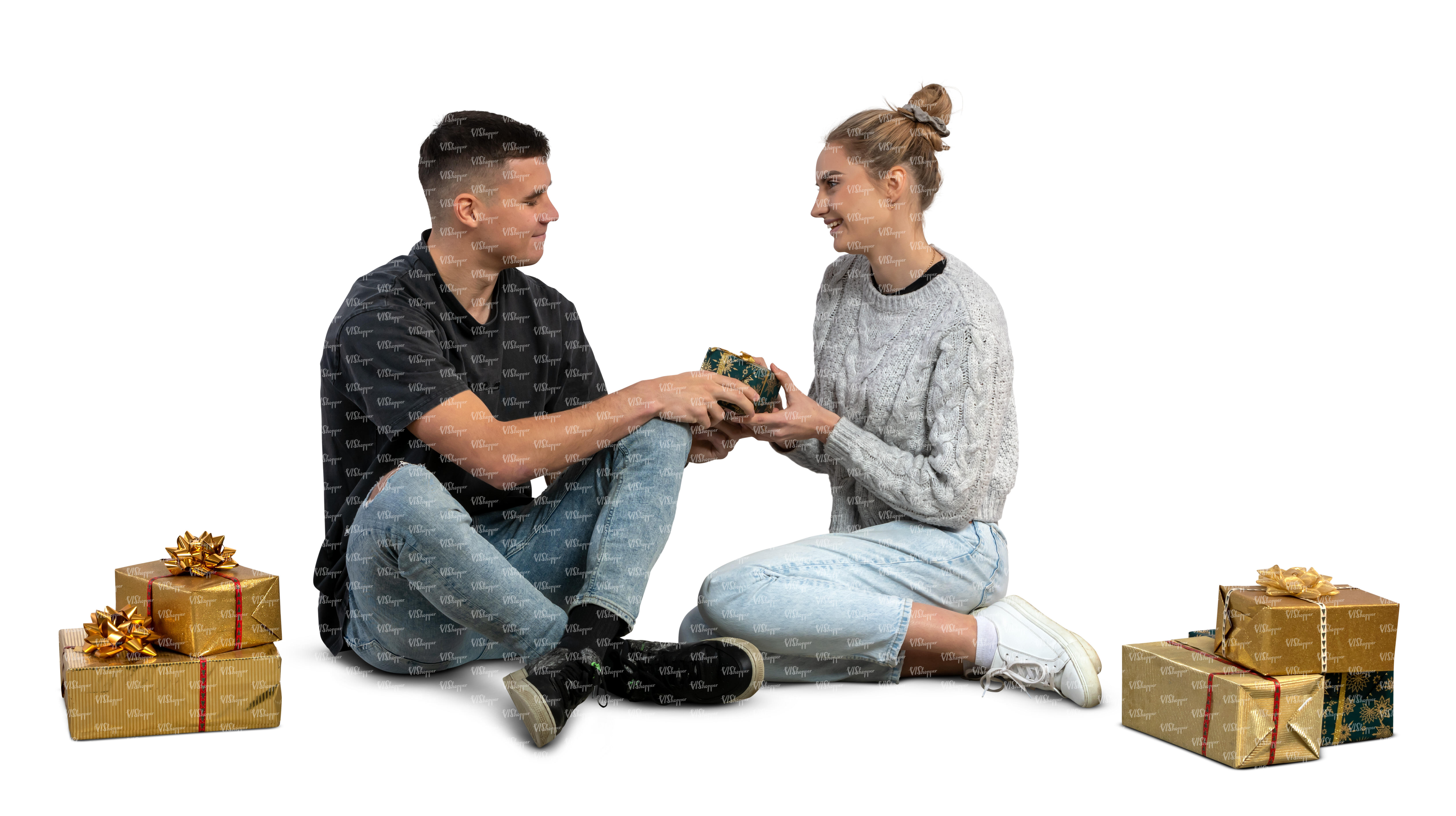 • cut out man and woman standing and talking while drinking refreshing drinks