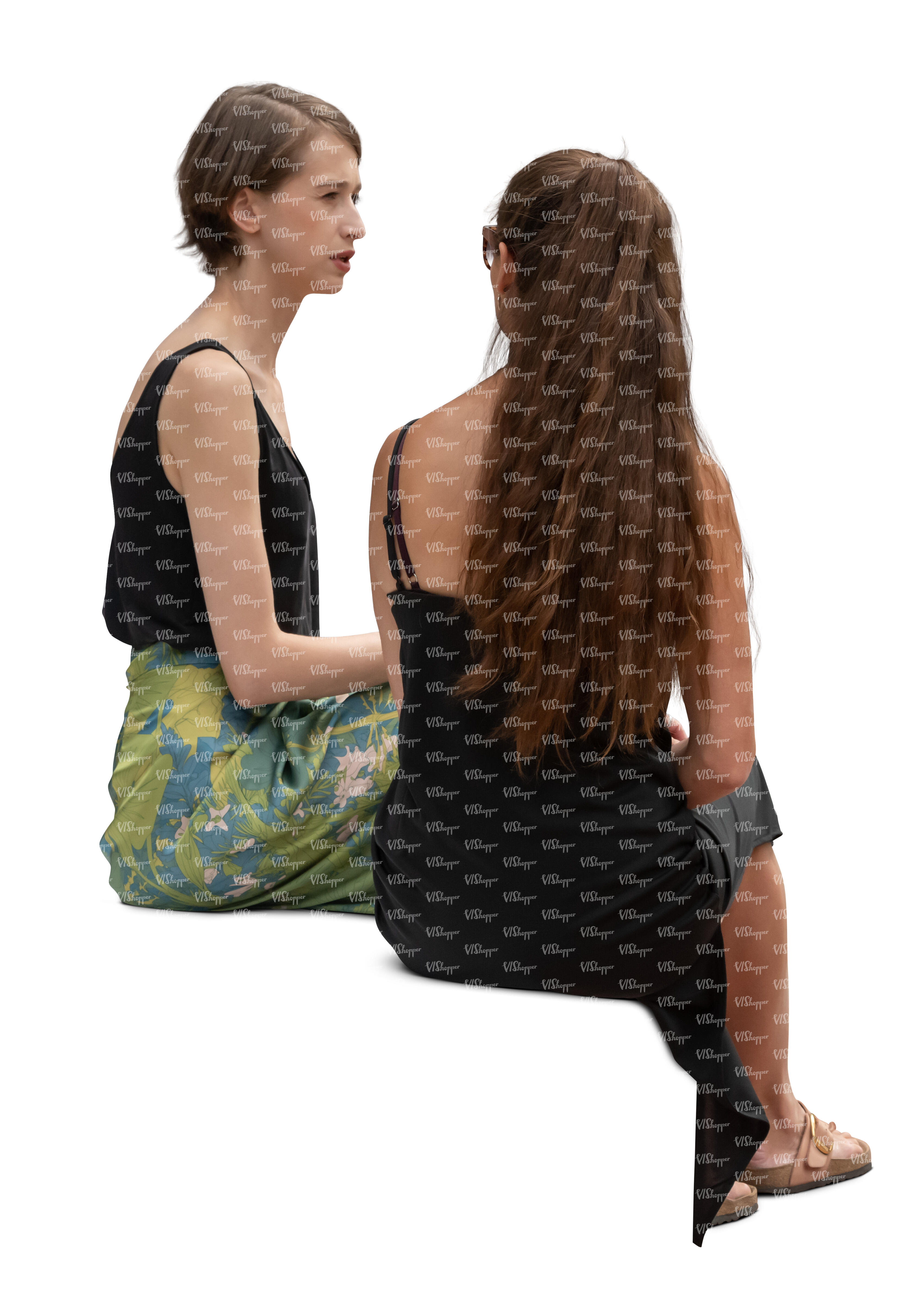 • two cut out asian women standing and talking