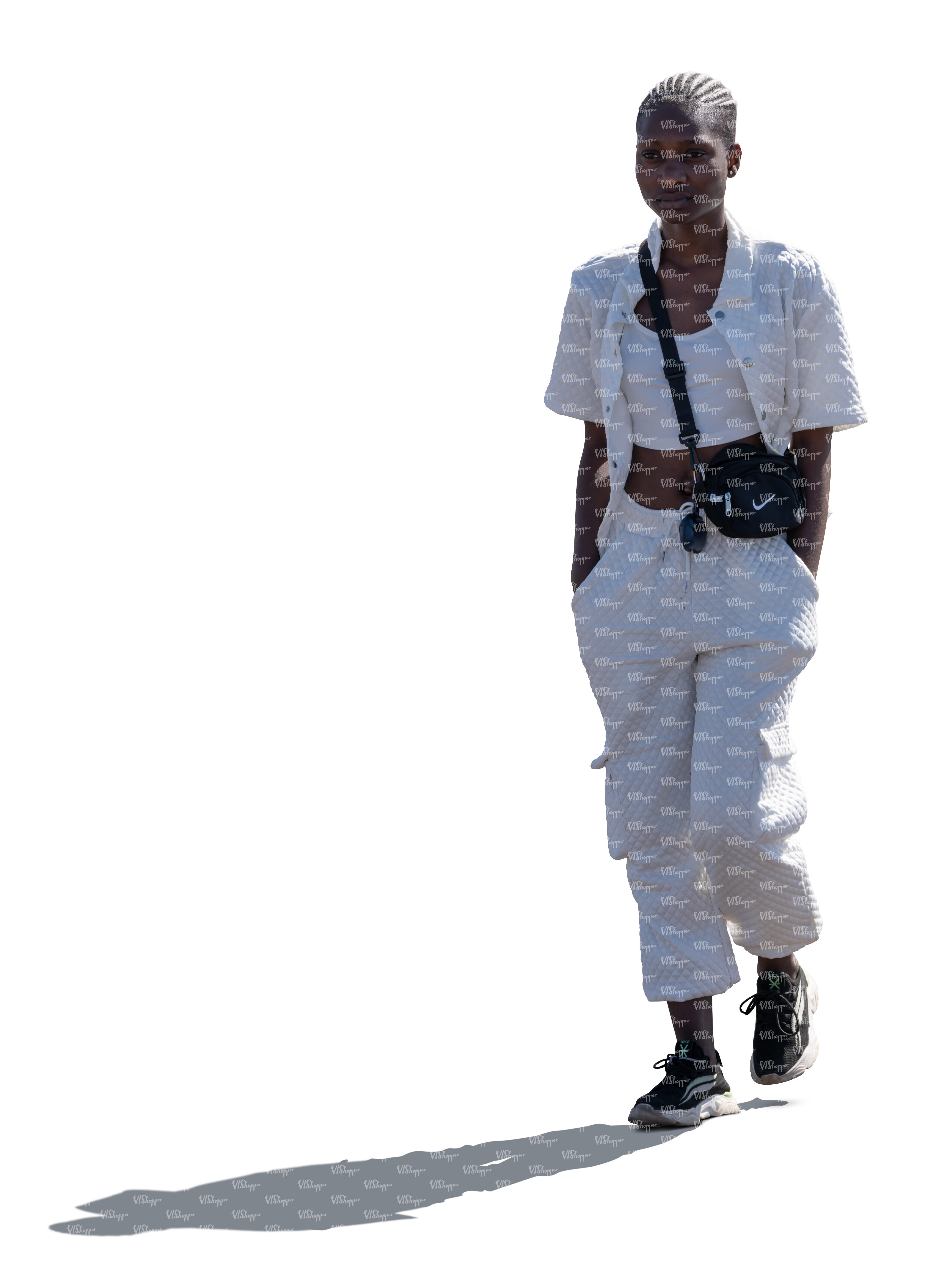 • backlit woman in a white clothing walking