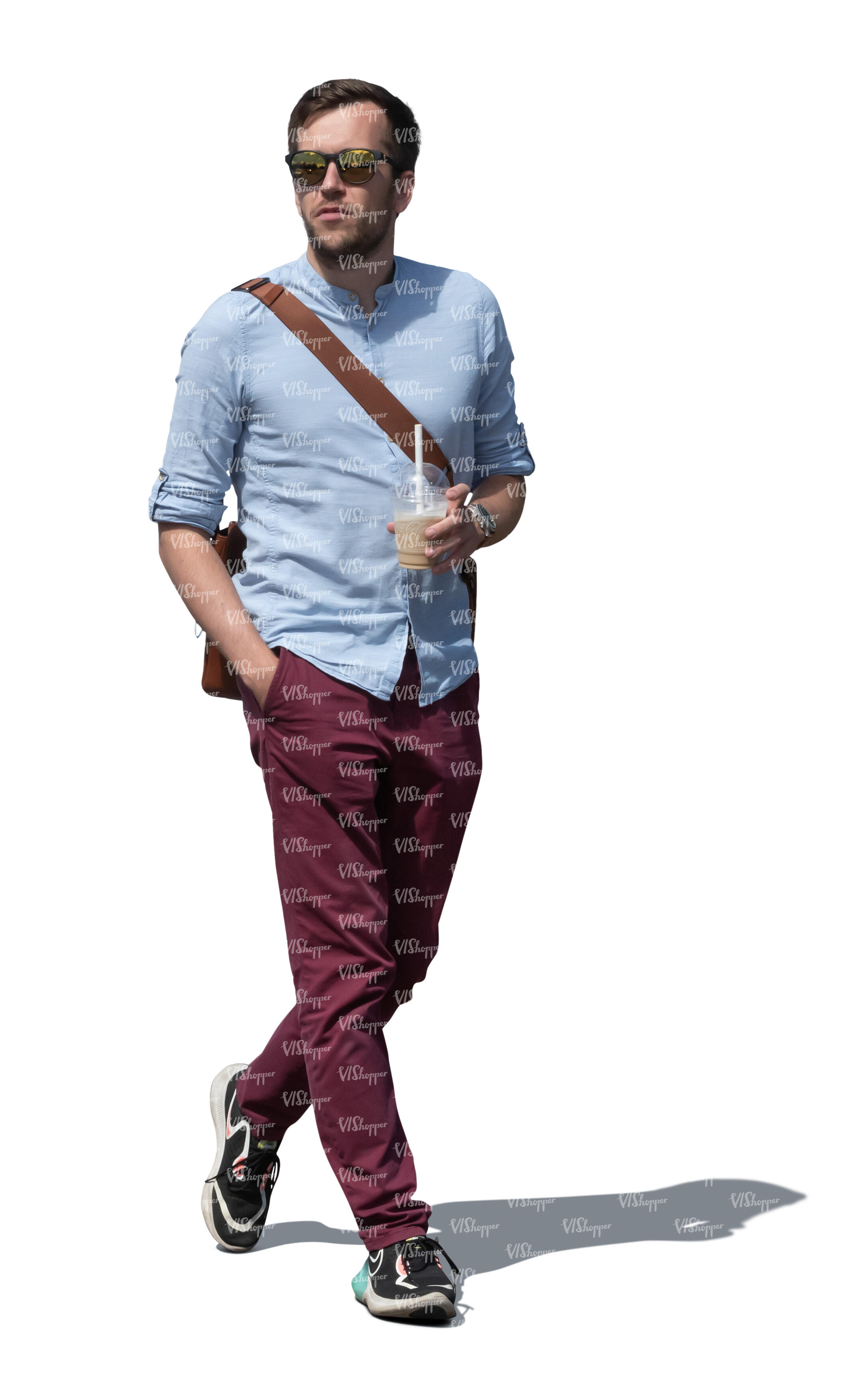 • man walking and drinking coffee on the way
