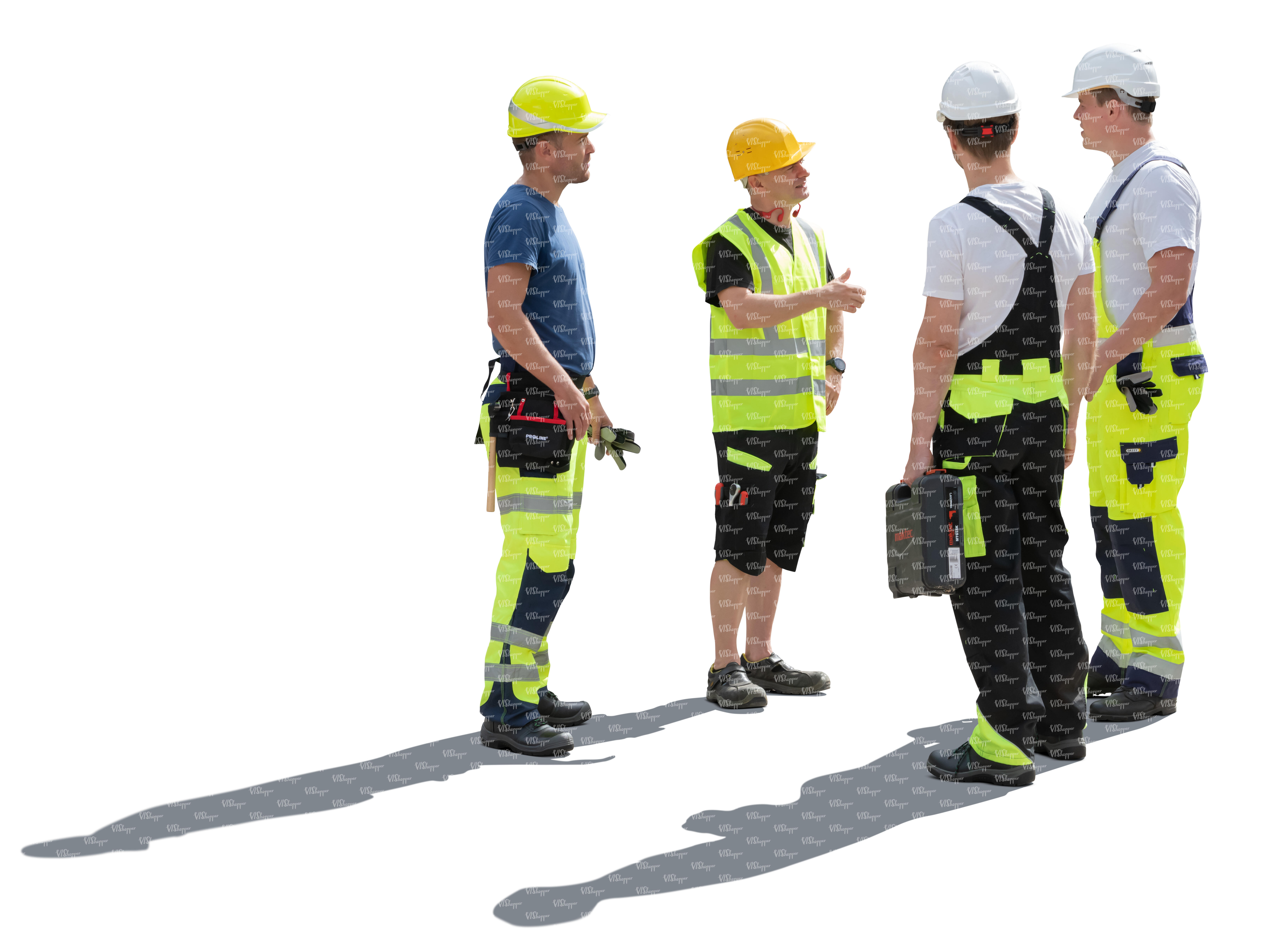 • backlit group of workmen standing and talking