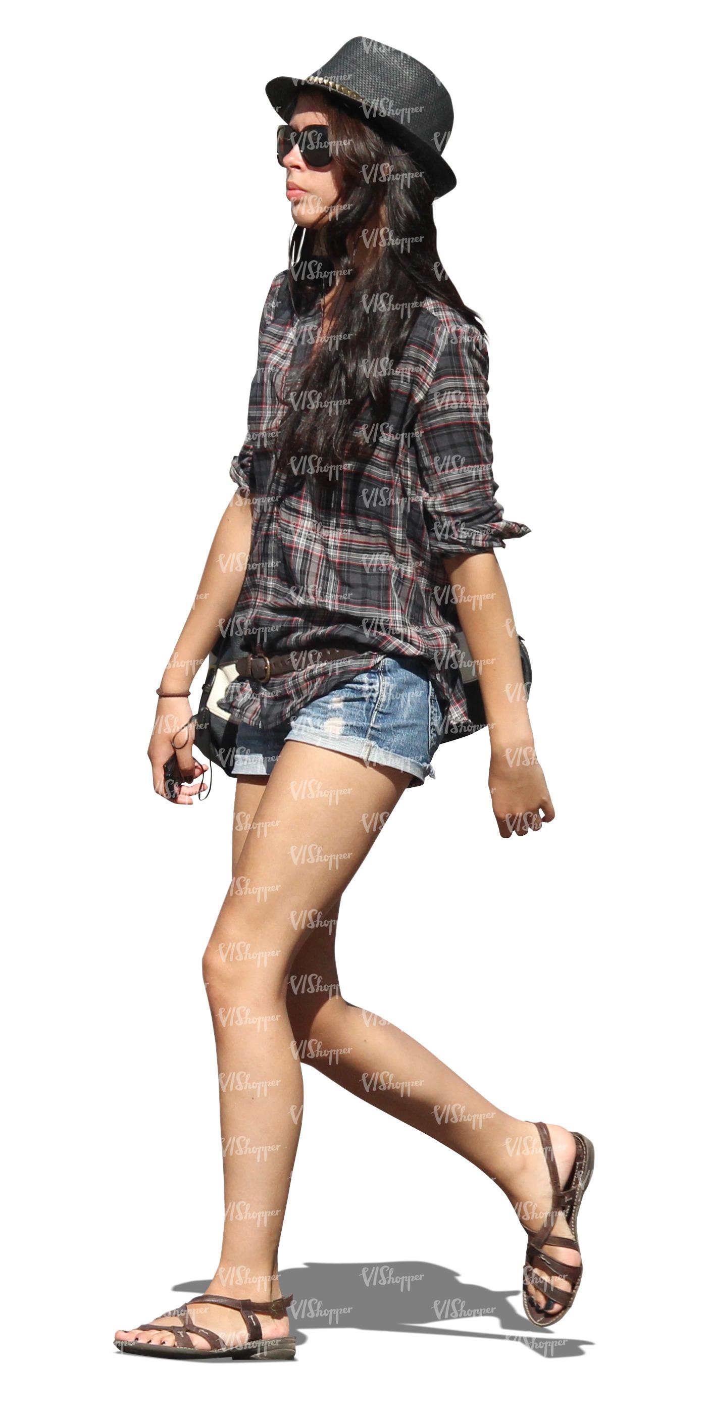 long-haired woman walking in summertime