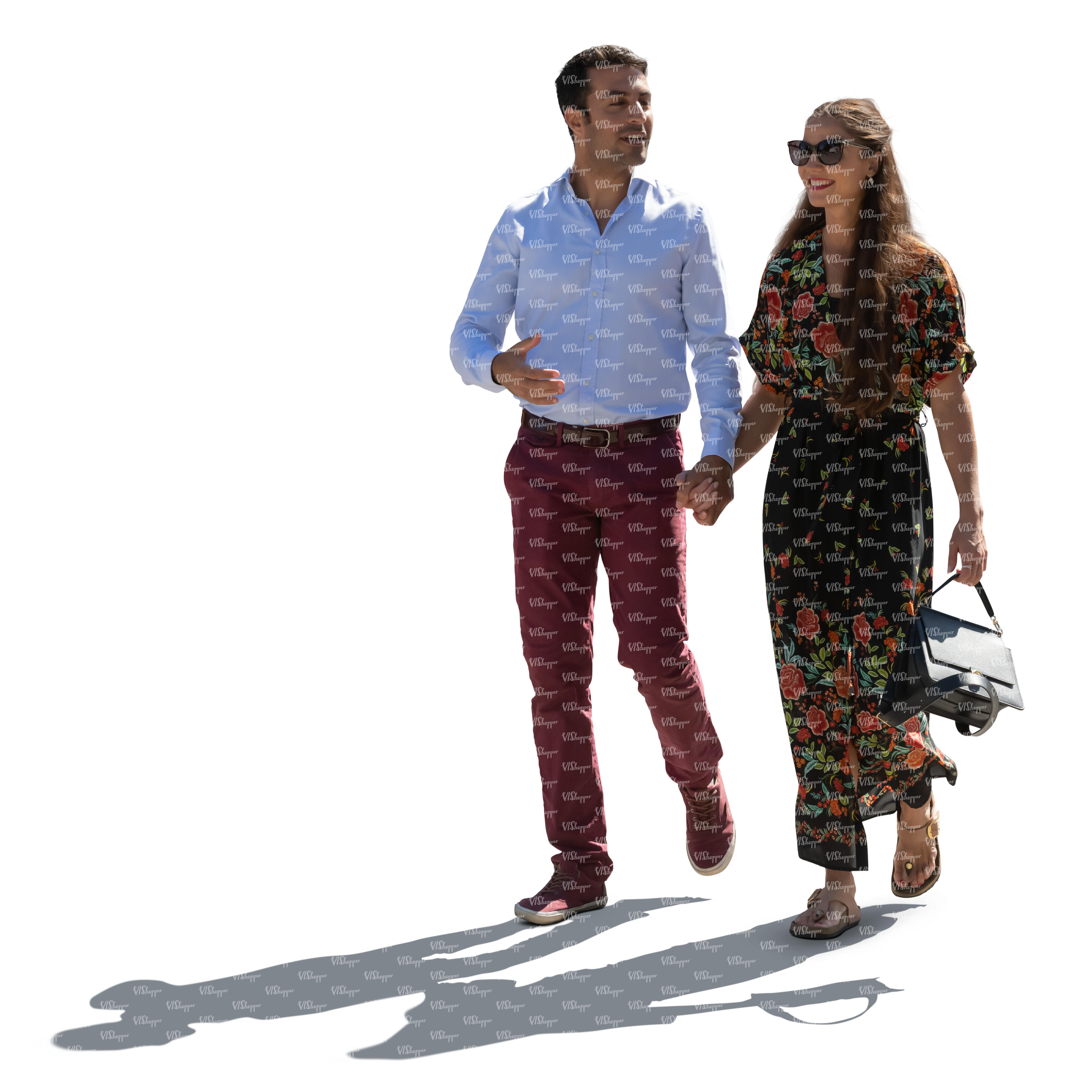 • cut out older man and woman walking outside in sunlight