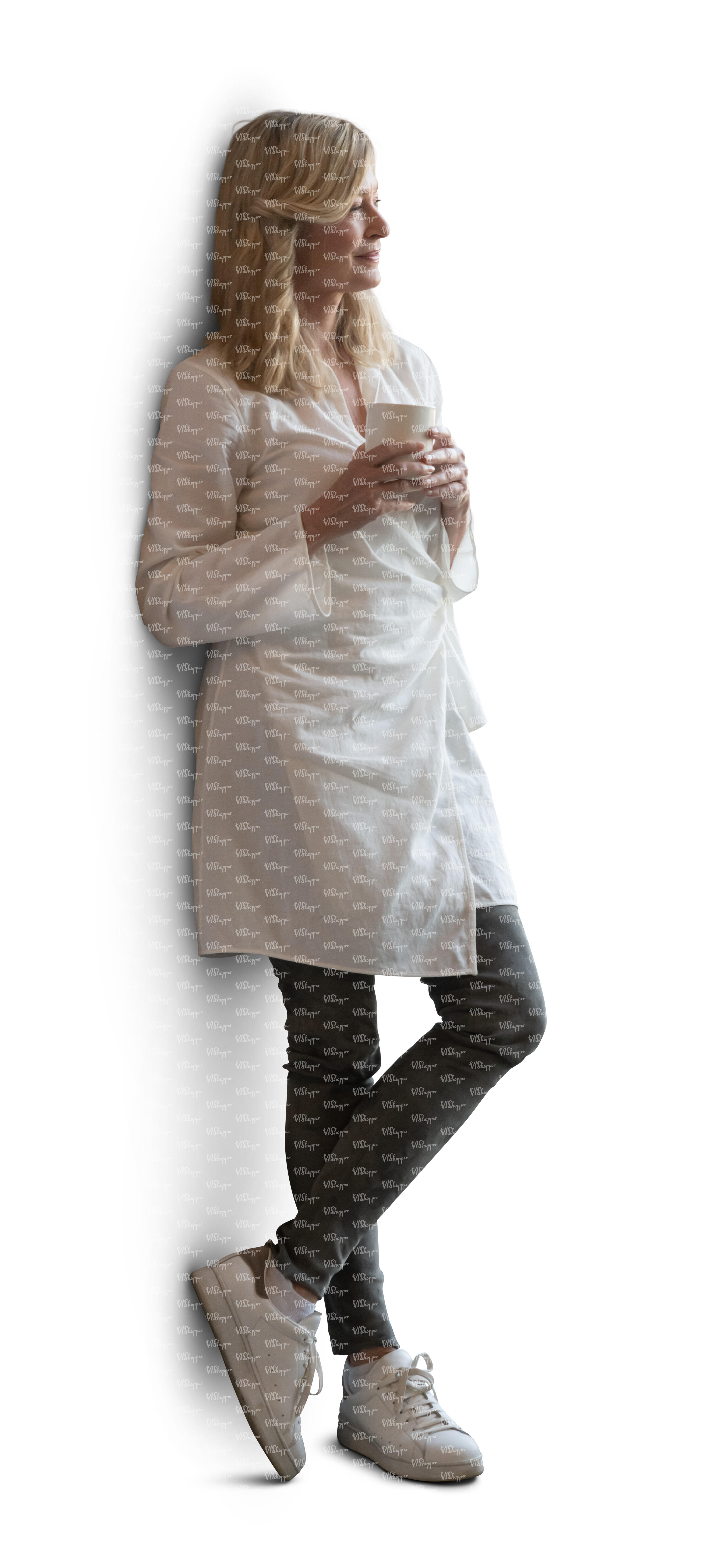 • cut out man and woman standing and talking while drinking refreshing drinks
