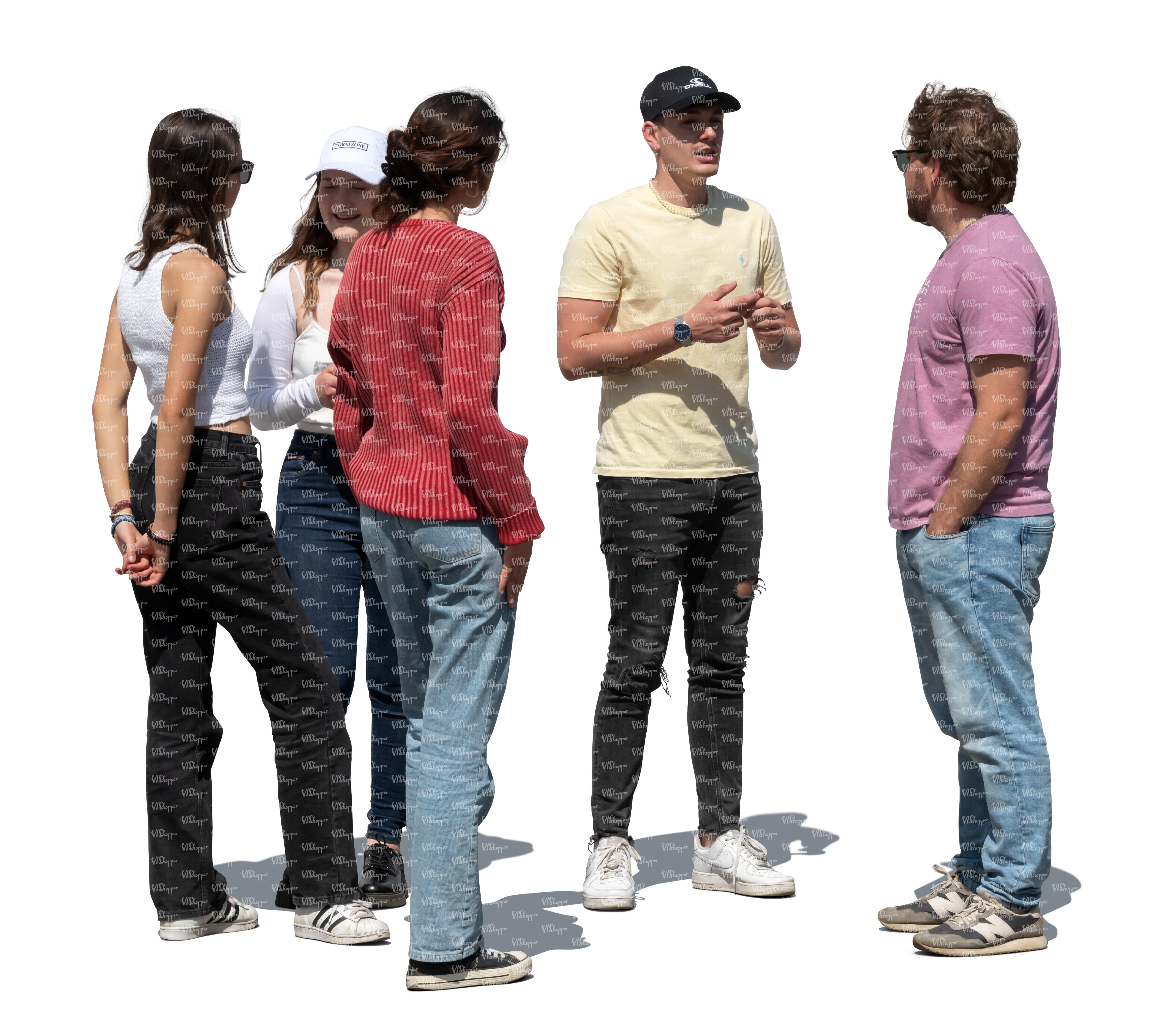 • cut out multinational group of friends walking